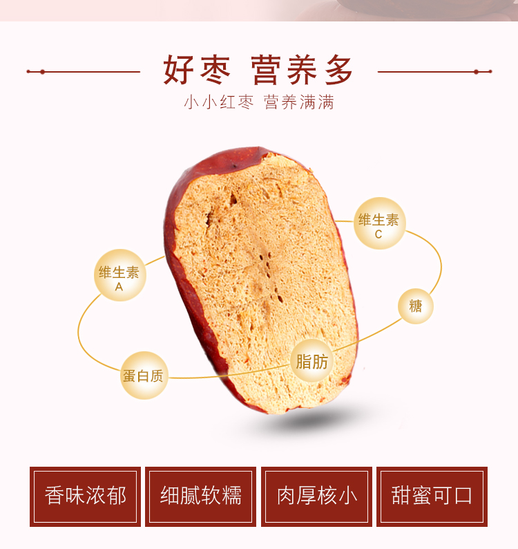 新疆灰棗源自全球七大優(yōu)質(zhì)水果產(chǎn)區(qū),灰棗色如瑪瑙,肉厚核小,自然成熟,富含維C,被稱為“天然的維生素丸”,入口香濃甜糯,可以用來泡茶、煮粥、熱蒸、熬湯等,是家庭必備的營養(yǎng)好物