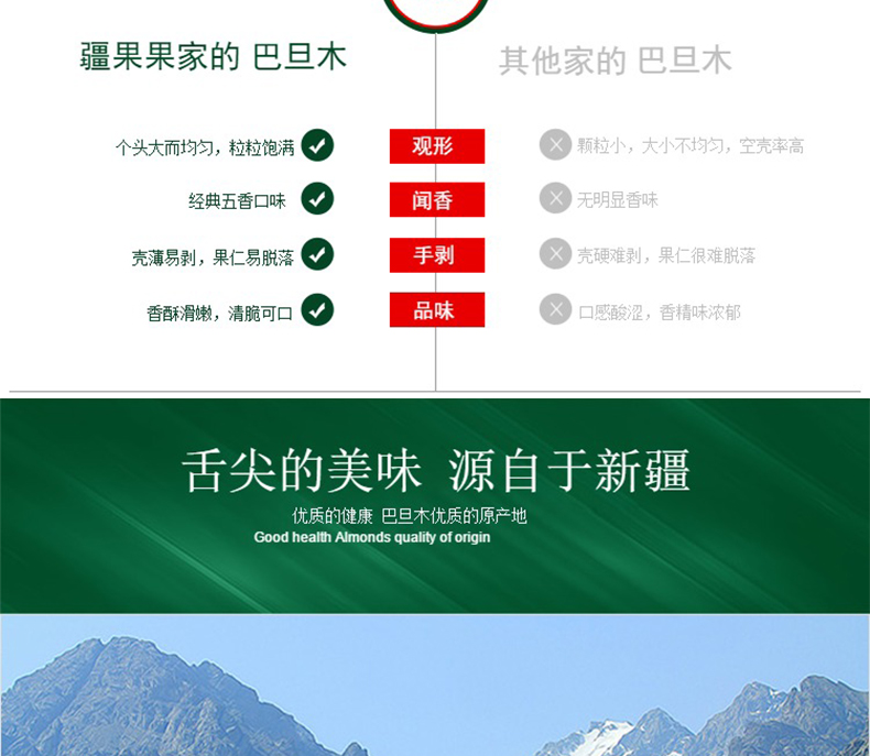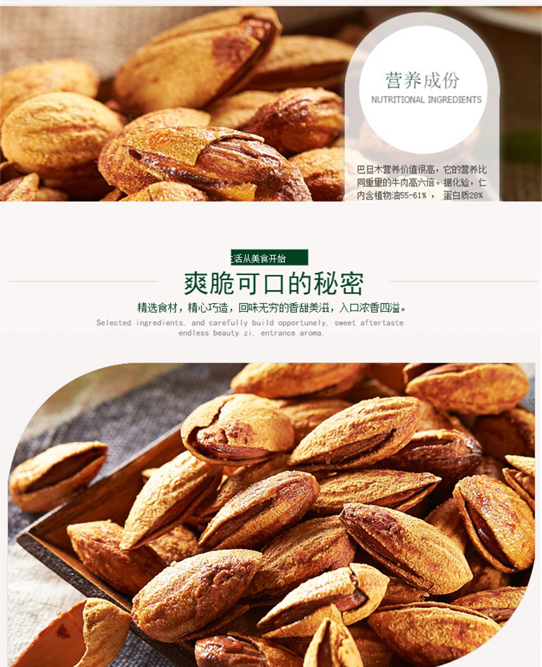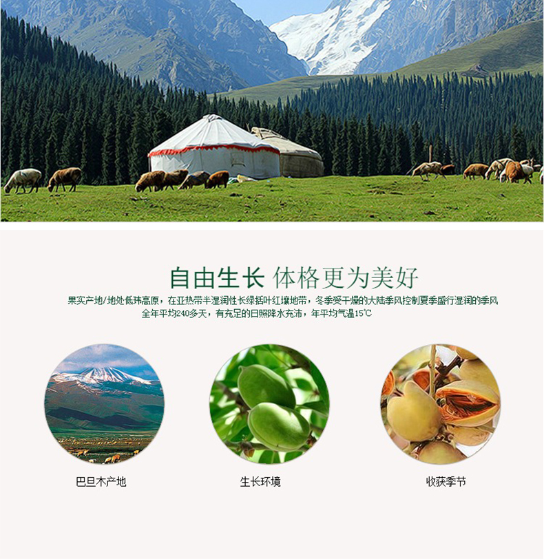 巴旦木素有“干果之王”、“西域珍品”之稱,富含蛋白質(zhì)、氨基酸及多種微量元素。笑口巴旦木,皮薄易取仁,口感酥脆,是新疆當(dāng)?shù)厝嗣裾写F客的佳品。