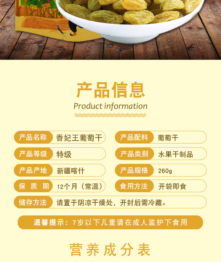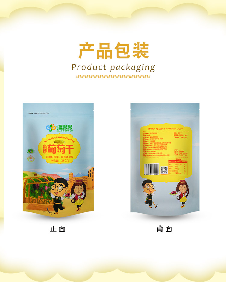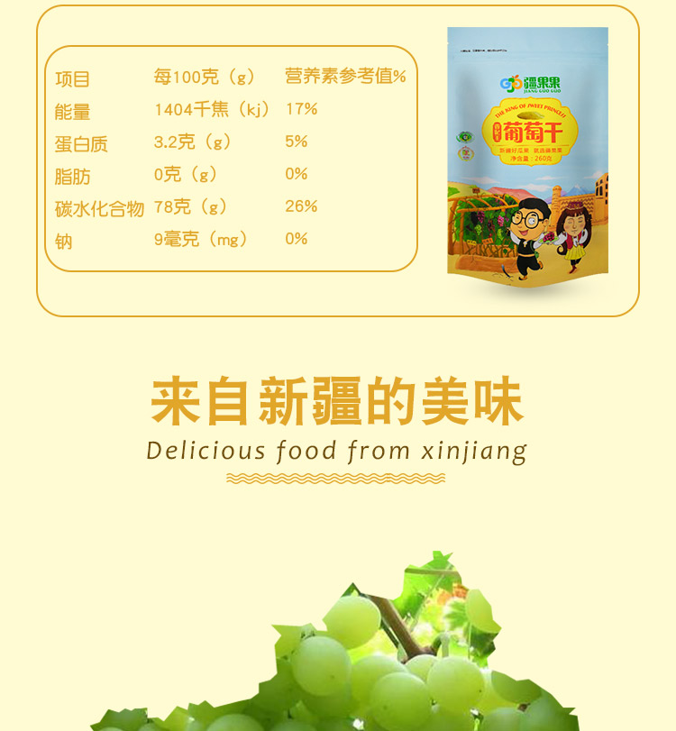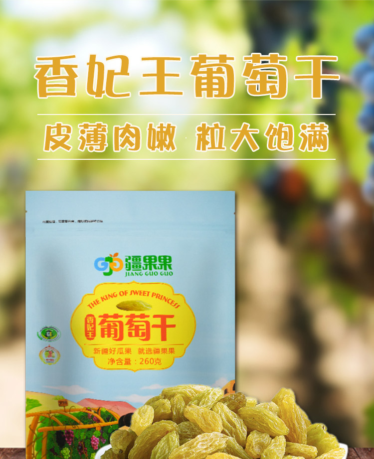 商品名稱:新疆 喀什 疆果果 香妃王葡萄干260g/袋 葡萄干
