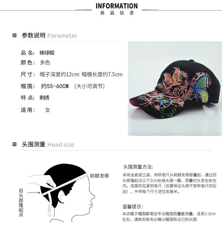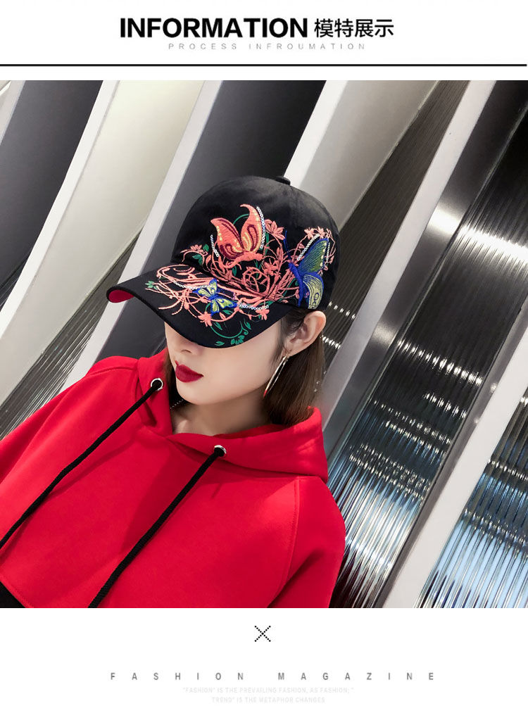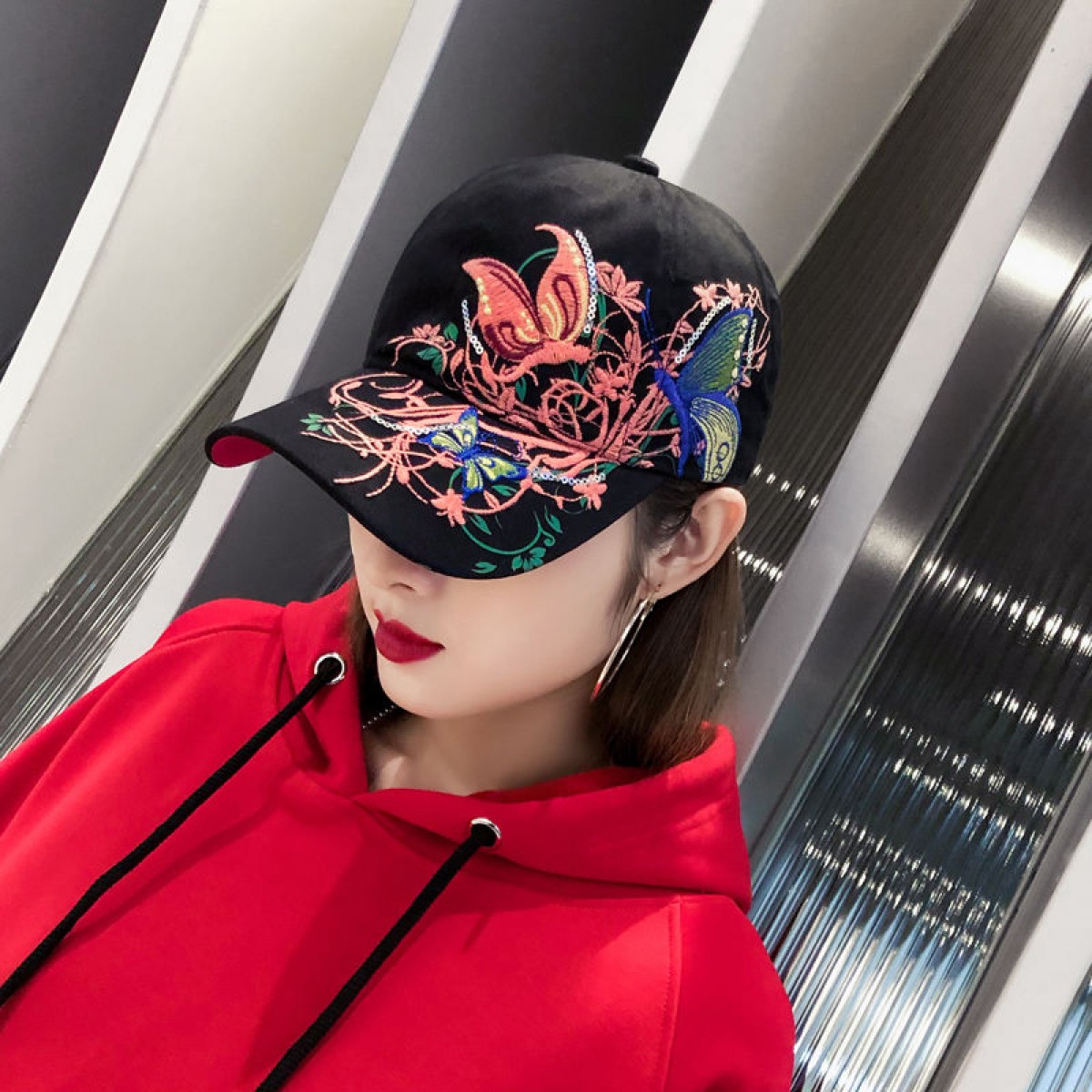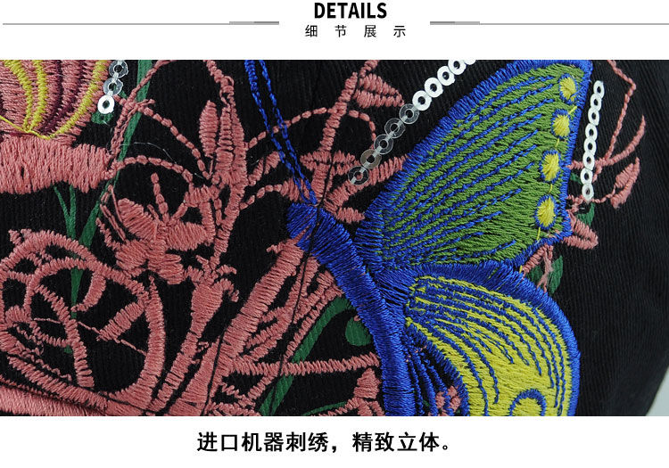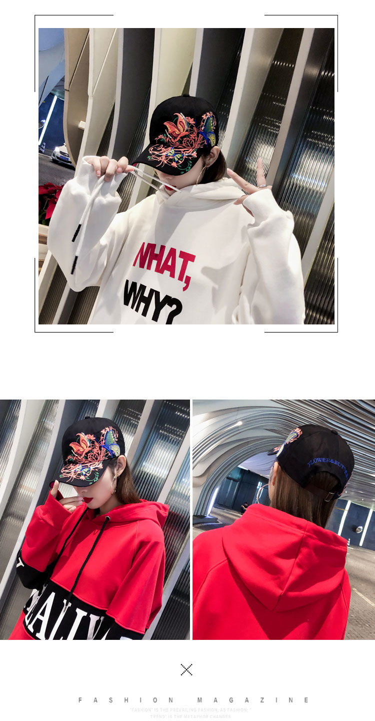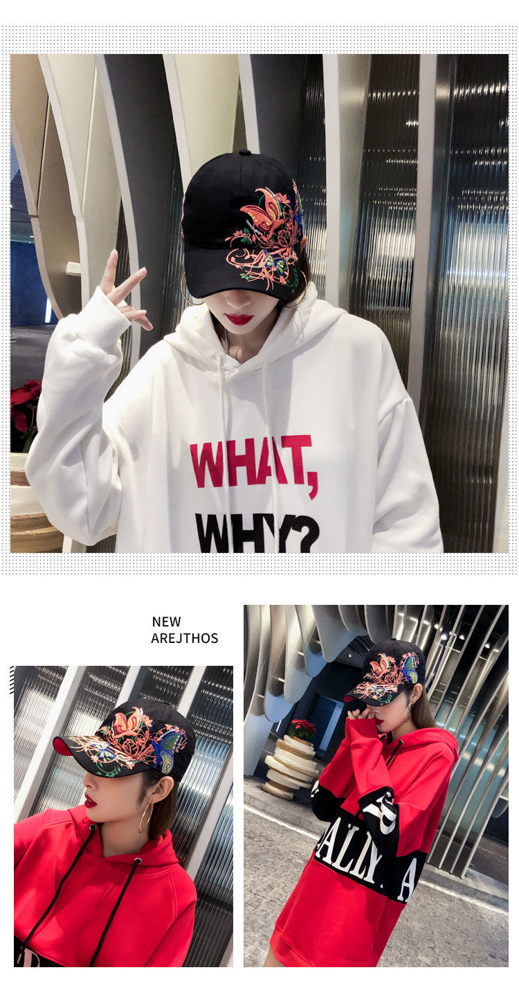 商品名稱:帽子女春秋韓版百搭鴨舌帽刺繡黑色民族風(fēng)遮陽(yáng)帽休閑嘻哈棒球帽
