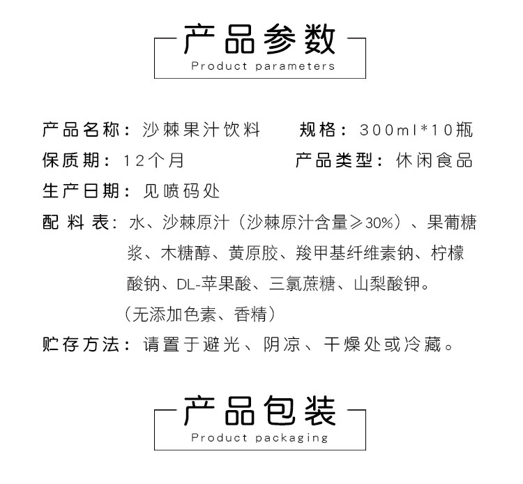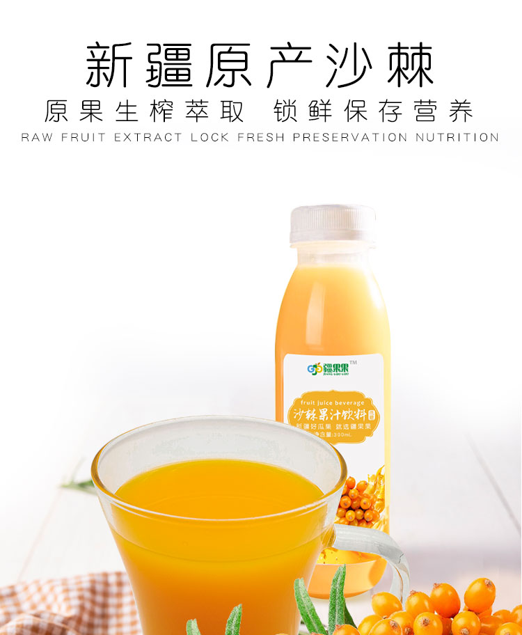 商品名稱:新疆 喀什 疆果果沙棘汁300ml/10瓶 果汁