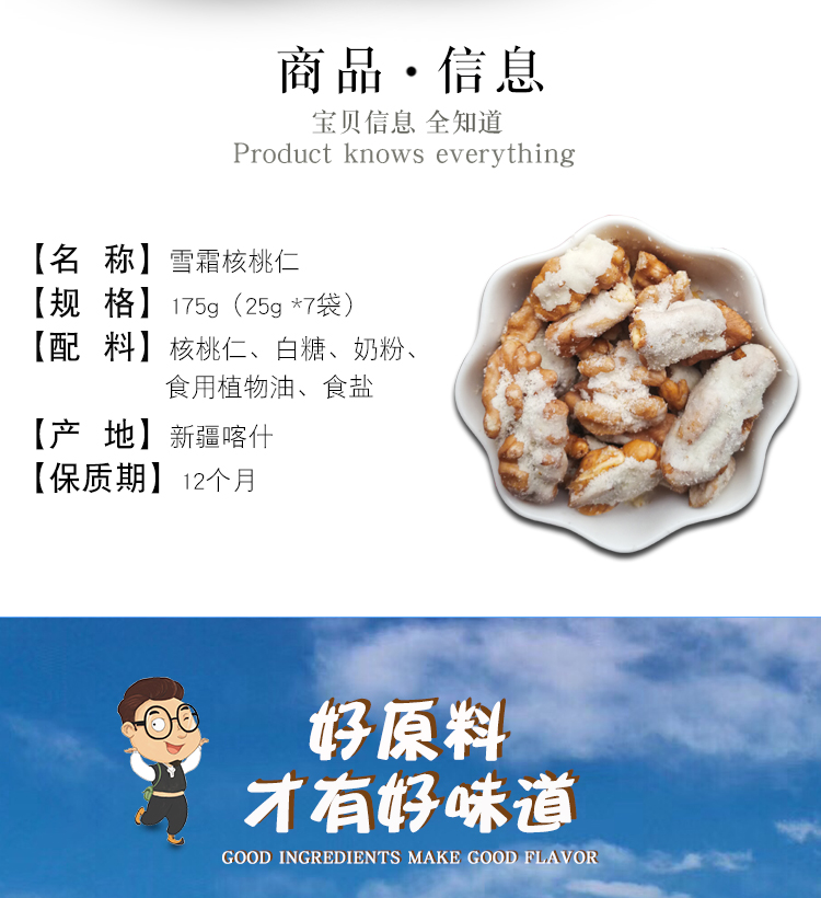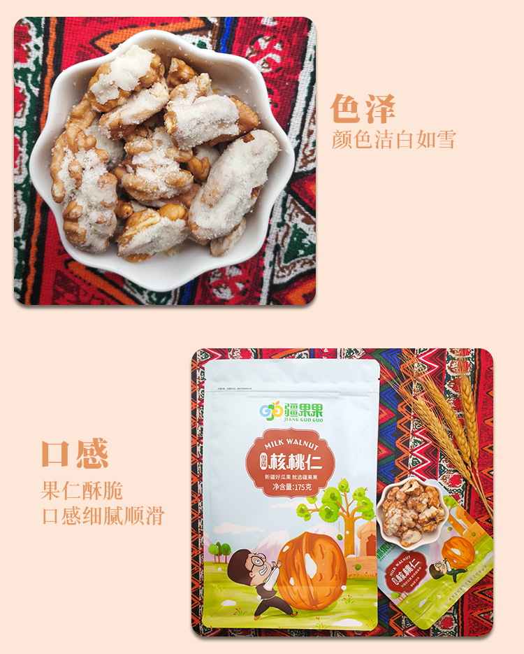 商品名稱:新疆 喀什 疆果果 雪霜核桃仁 175g/袋 核桃