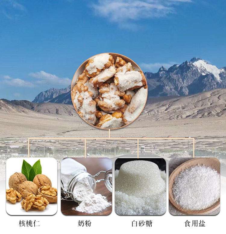 臻選新疆優(yōu)質(zhì)核桃果仁,進(jìn)行烘烤,和以奶粉, 口感酥脆,細(xì)膩順滑 獨(dú)立小包裝,精致又便攜,帶你回到“小時(shí)候的味道”