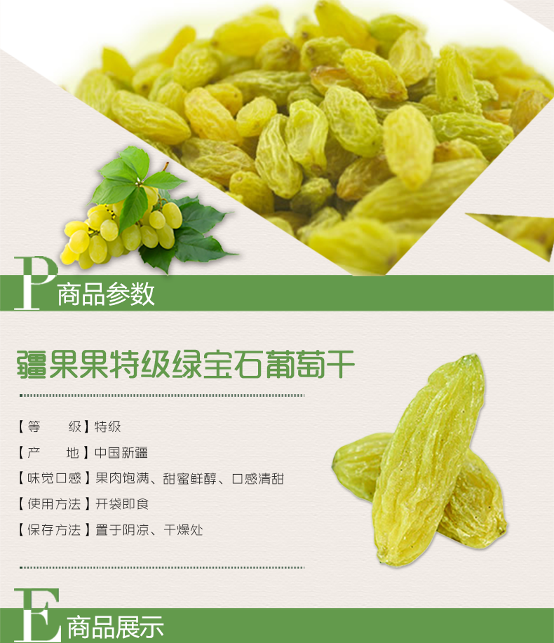 商品名稱:新疆 喀什 疆果果 玫綠寶石葡萄干260g/袋 葡萄干