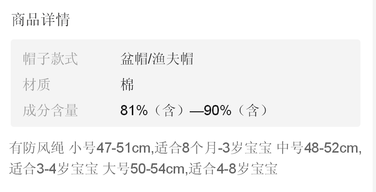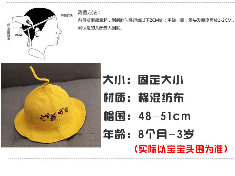 商品名稱:春天寶寶漁夫帽春秋薄款男女童小姐姐兒童盆帽子可愛(ài)超萌夏天遮陽(yáng)