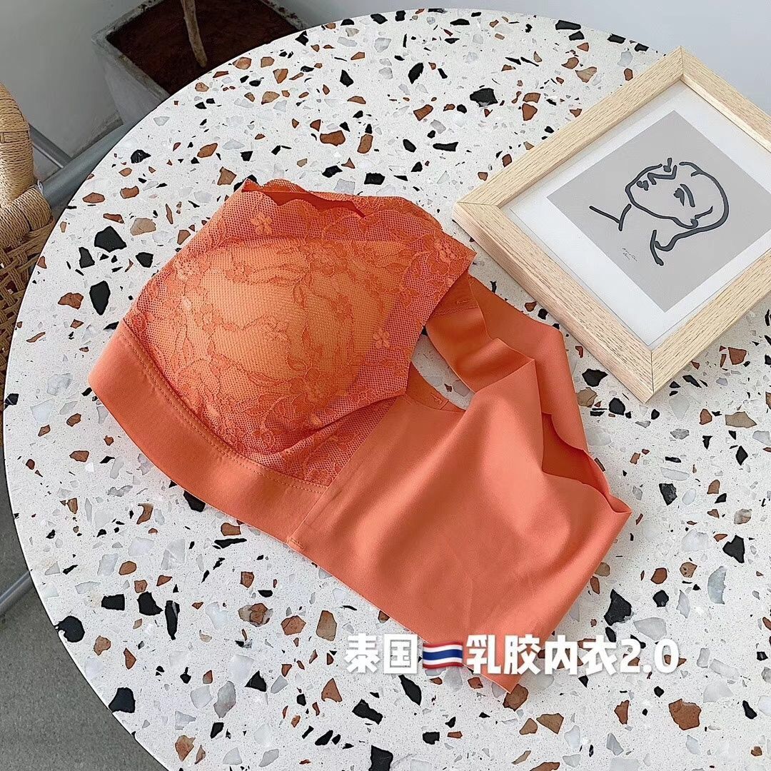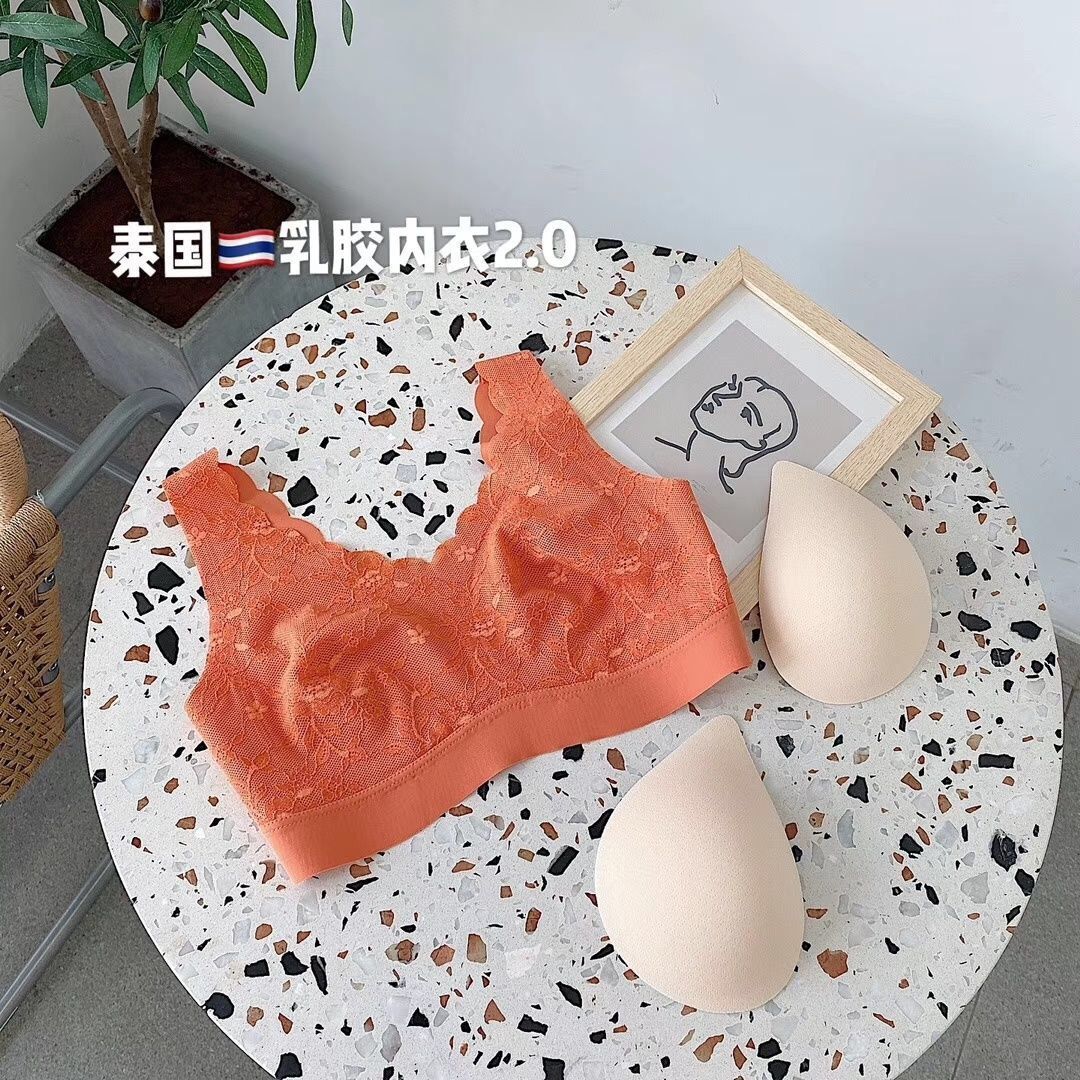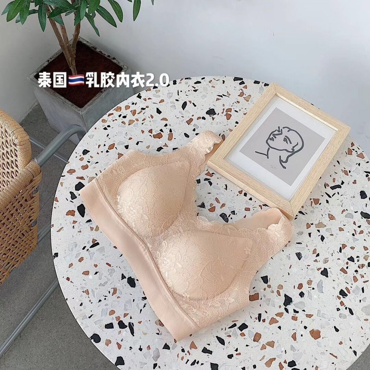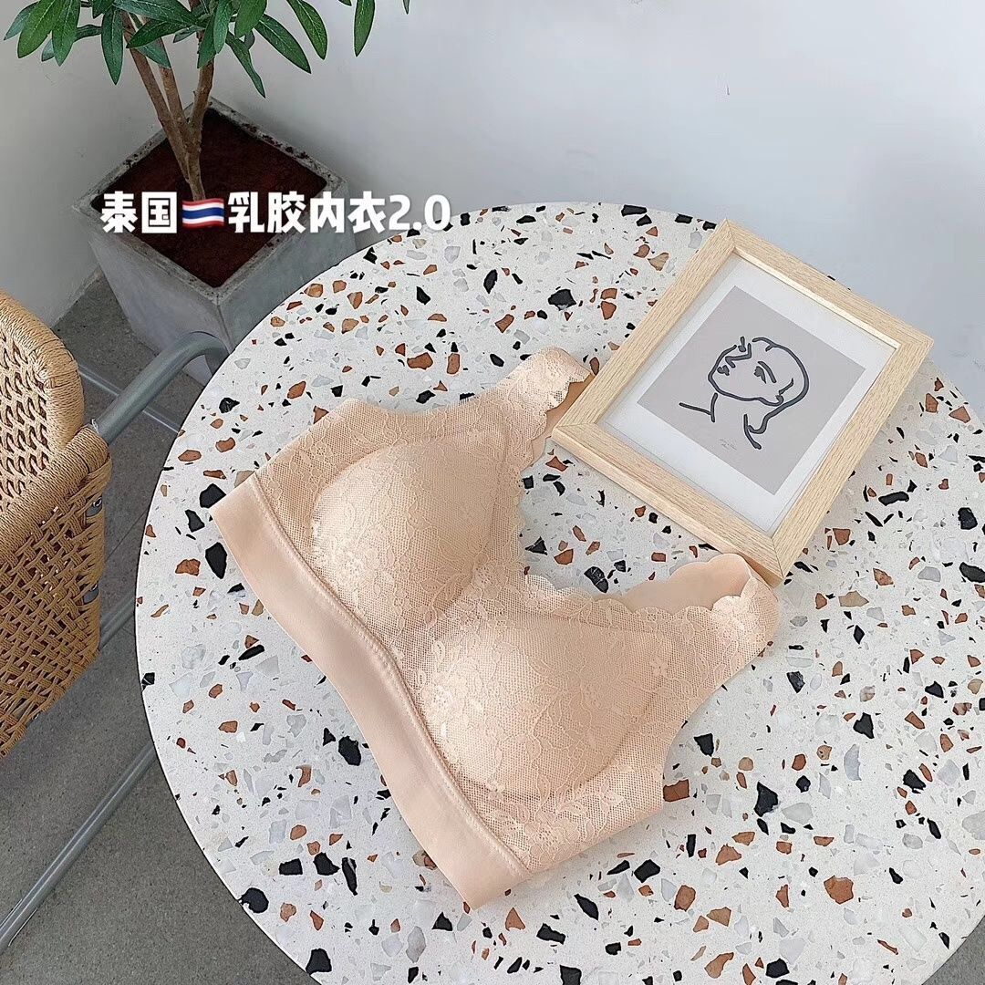 泰國乳膠內衣聚攏蕾絲乳膠少女文胸一片無痕式高彈面料聚攏水滴杯