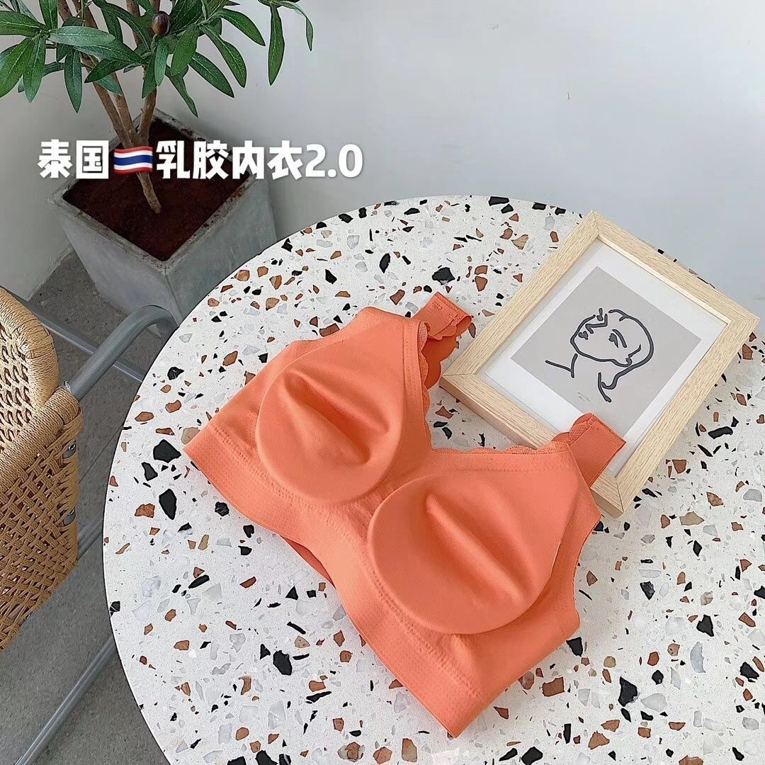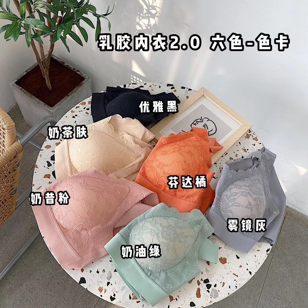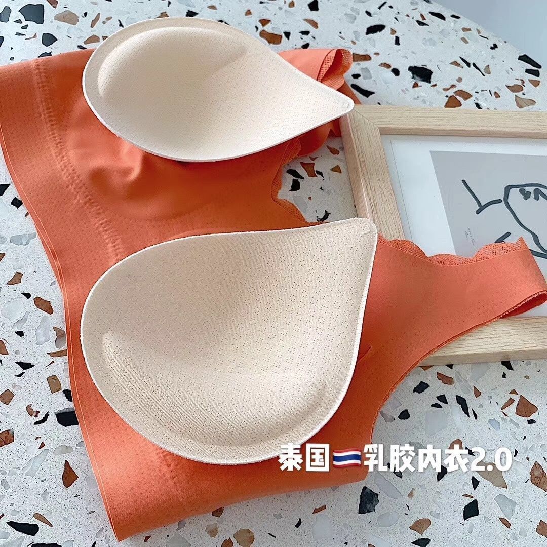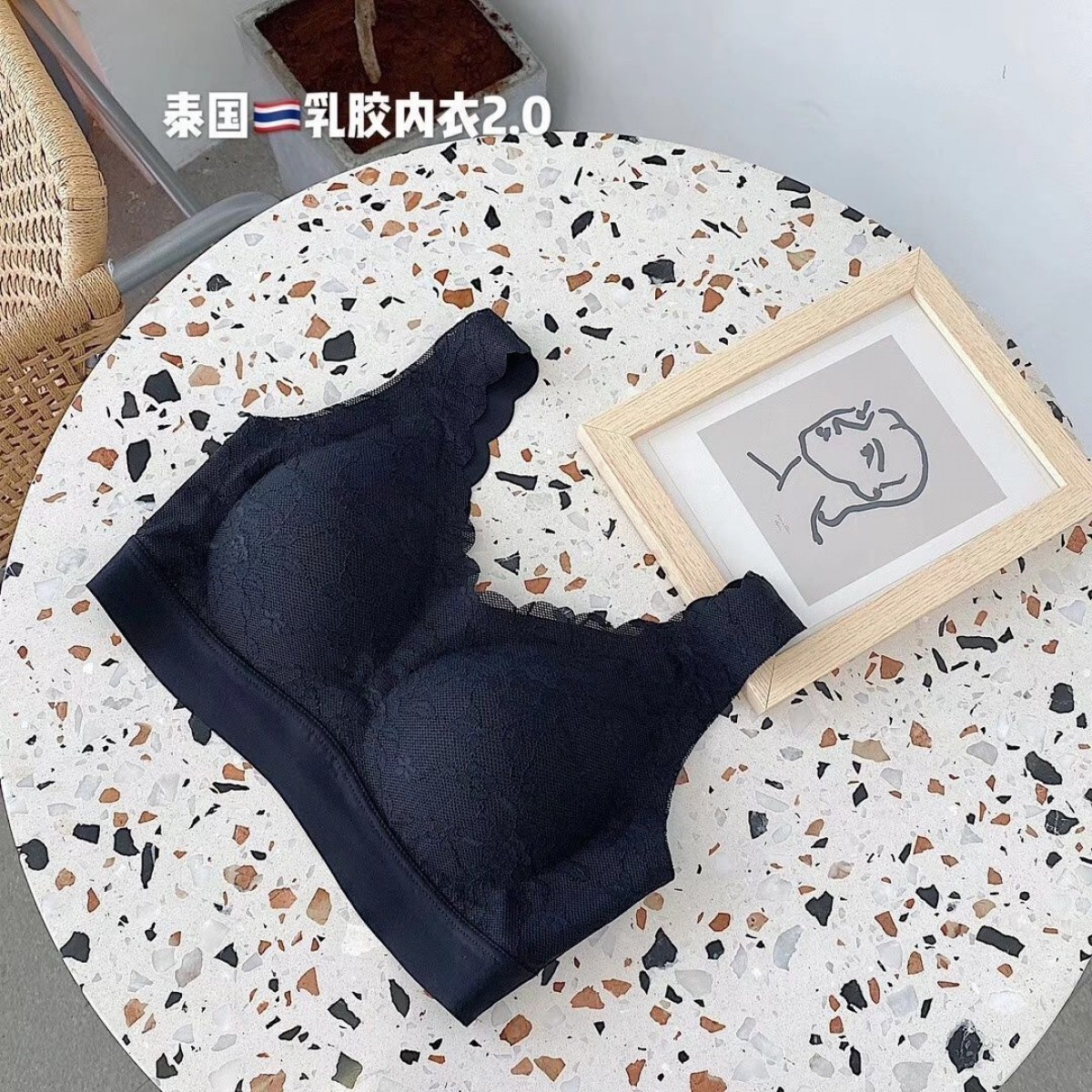 泰國乳膠內衣聚攏蕾絲乳膠少女文胸一片無痕式高彈面料聚攏水滴杯