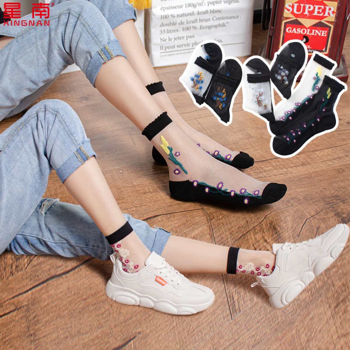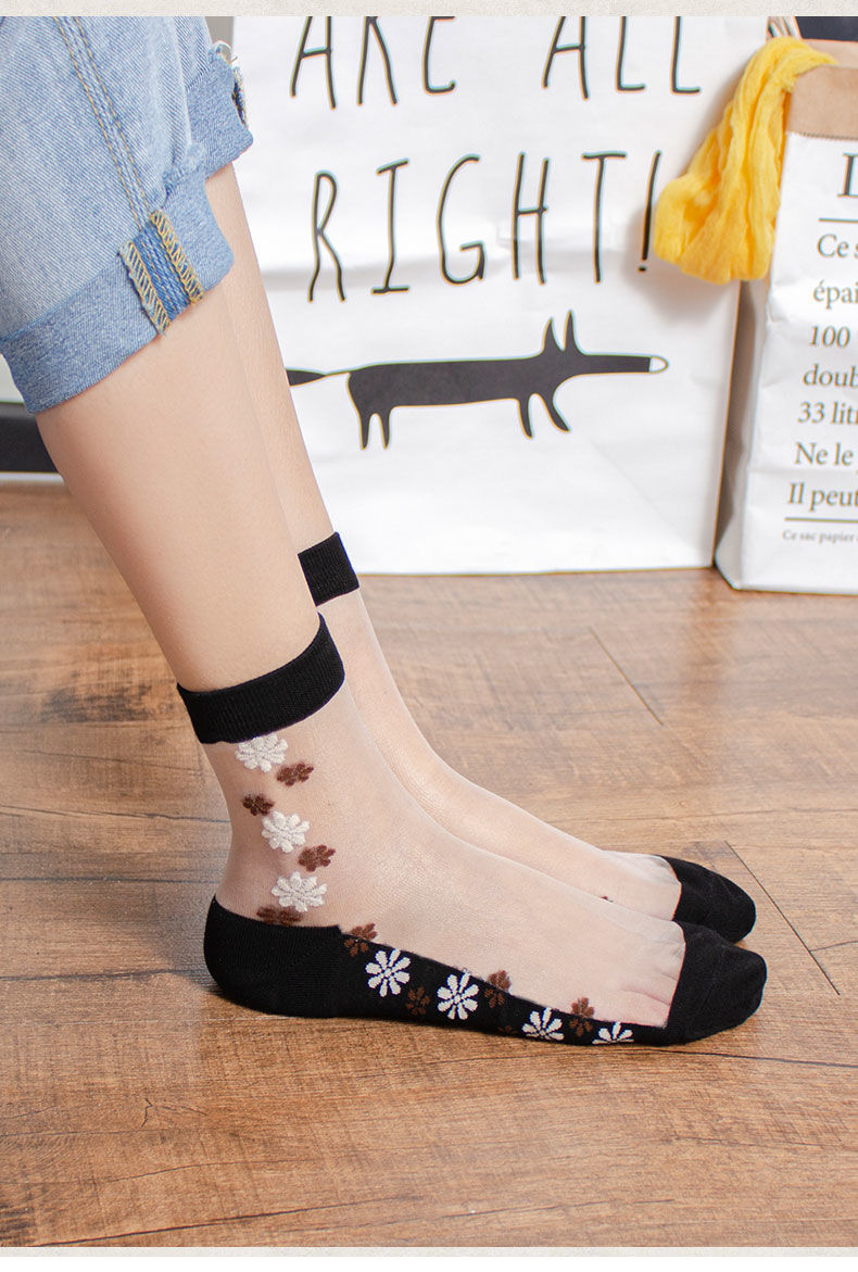 商品名稱:【新品棉底絲襪】春夏季新品襪子女韓版中筒玻璃水晶絲襪女防勾絲