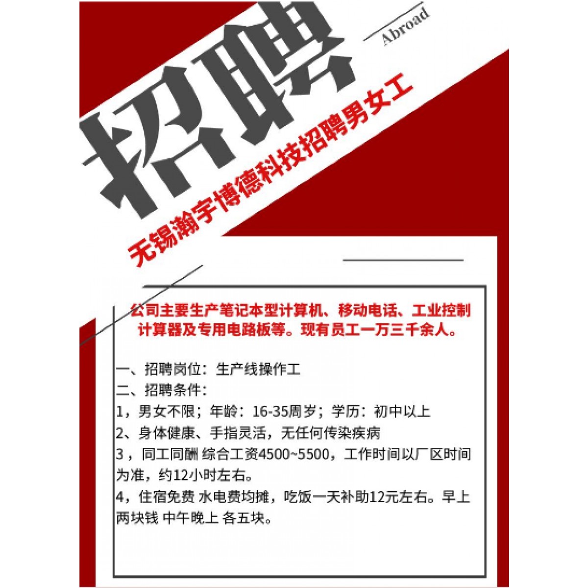 無(wú)錫瀚宇博德科技招聘男女工200人