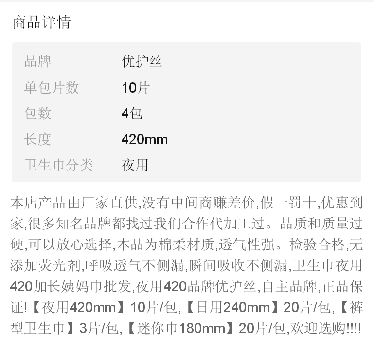 商品名稱:特價衛(wèi)生巾夜用超長420mm棉柔正品透氣姨媽巾產(chǎn)婦巾學(xué)生整箱批發(fā)