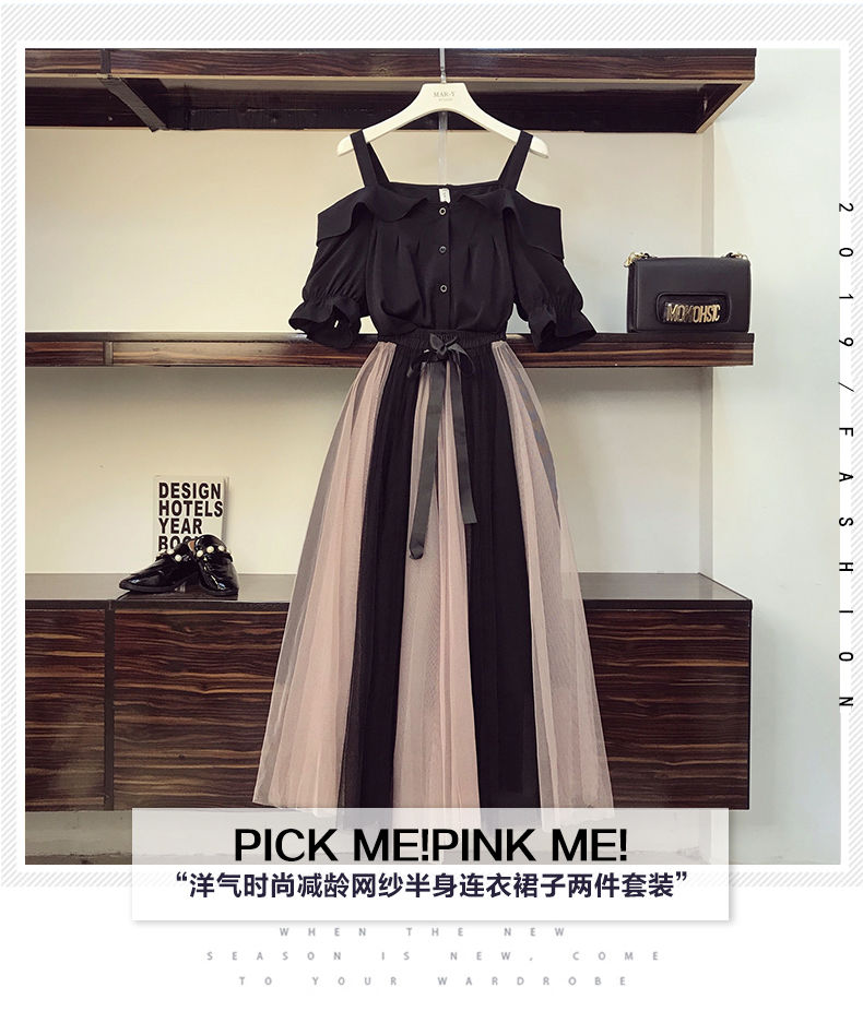 商品名稱:套裝大碼女裝2020新款春夏裝顯瘦洋氣胖妹妹連衣裙兩件套裝