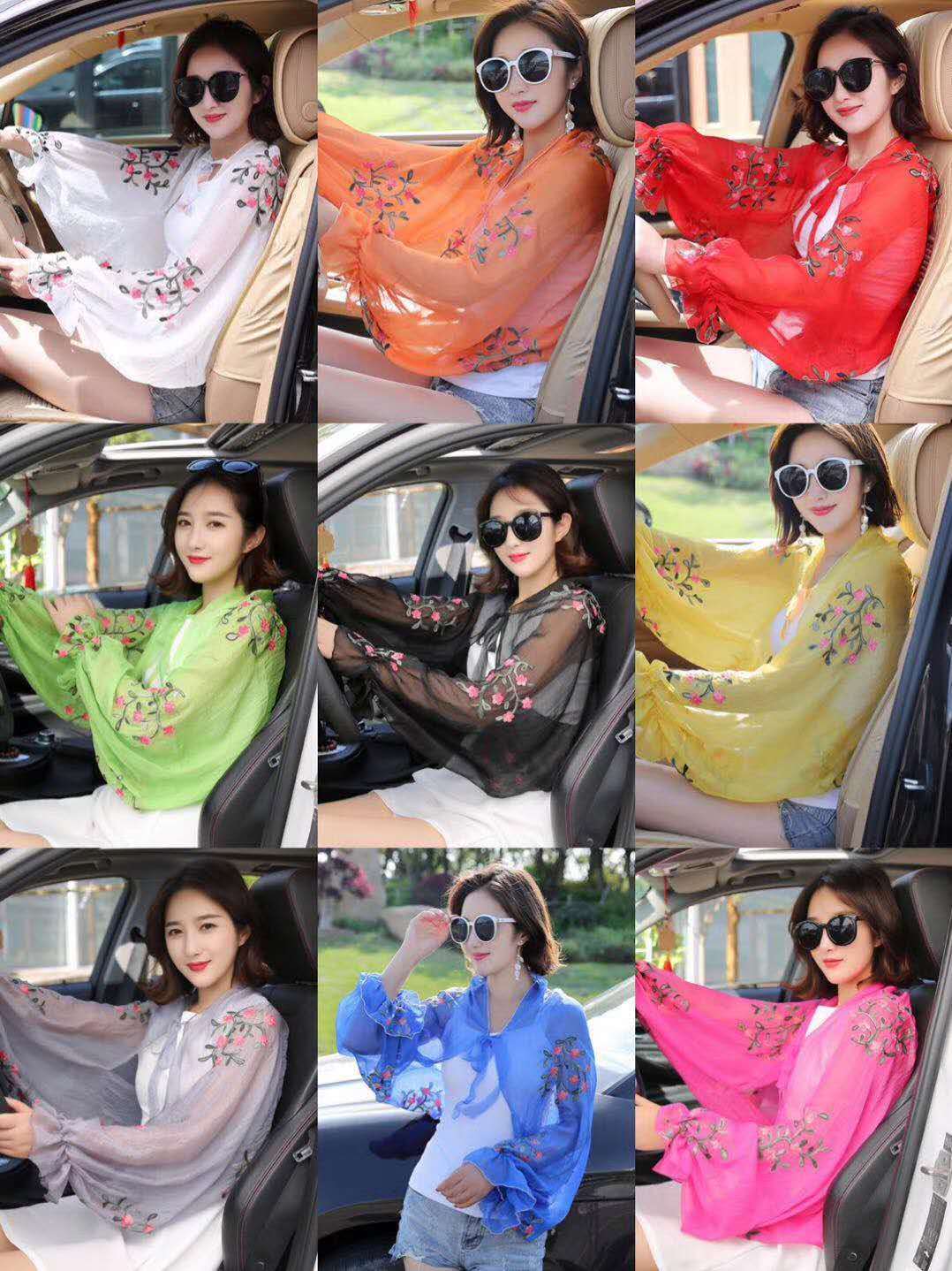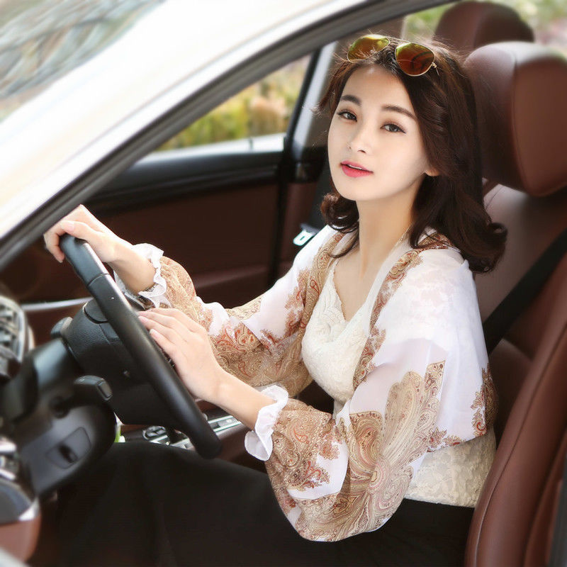 商品名稱:夏季遮陽披肩女印花雪紡防曬長袖套騎行防紫外線披肩絲巾