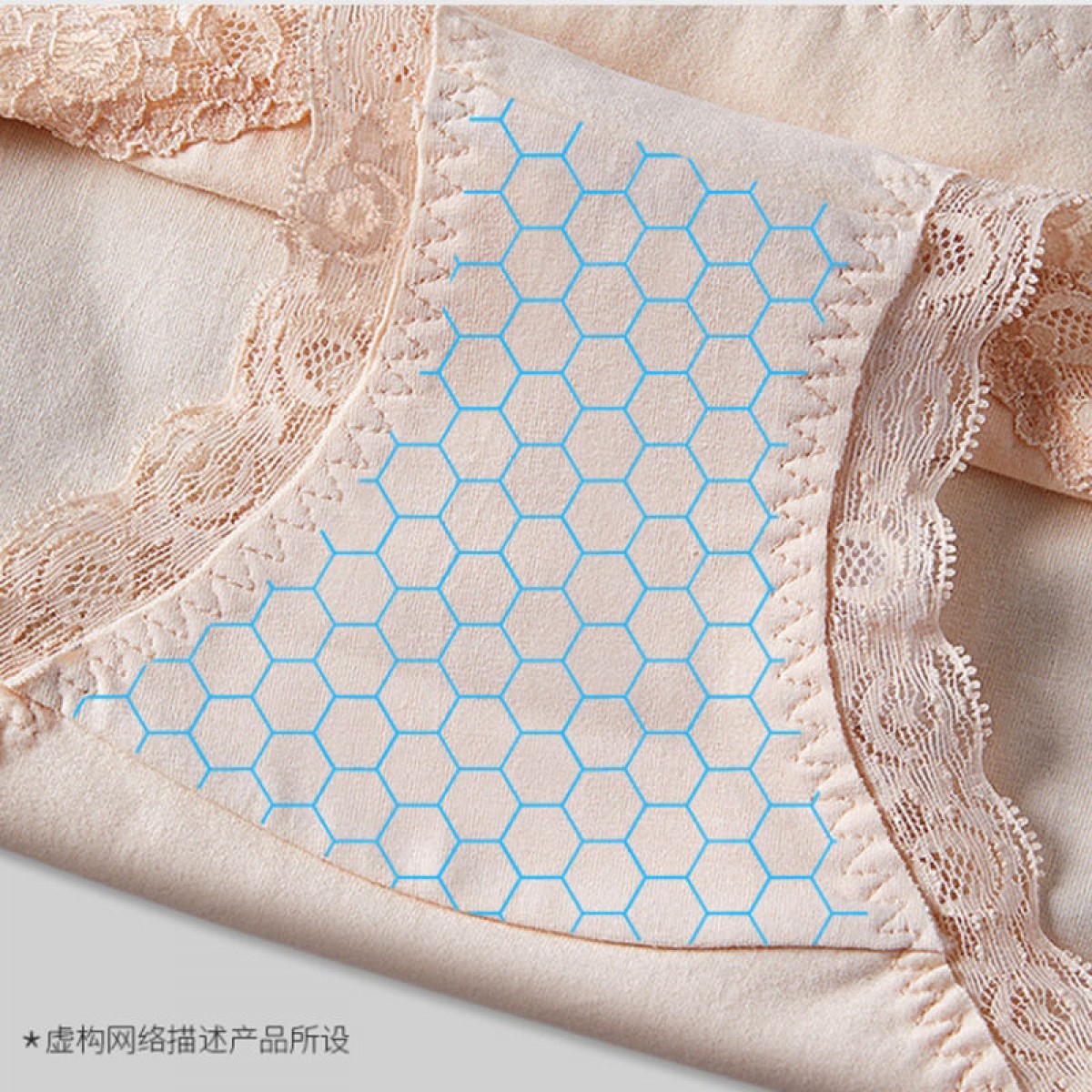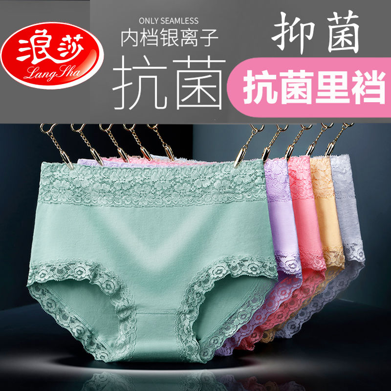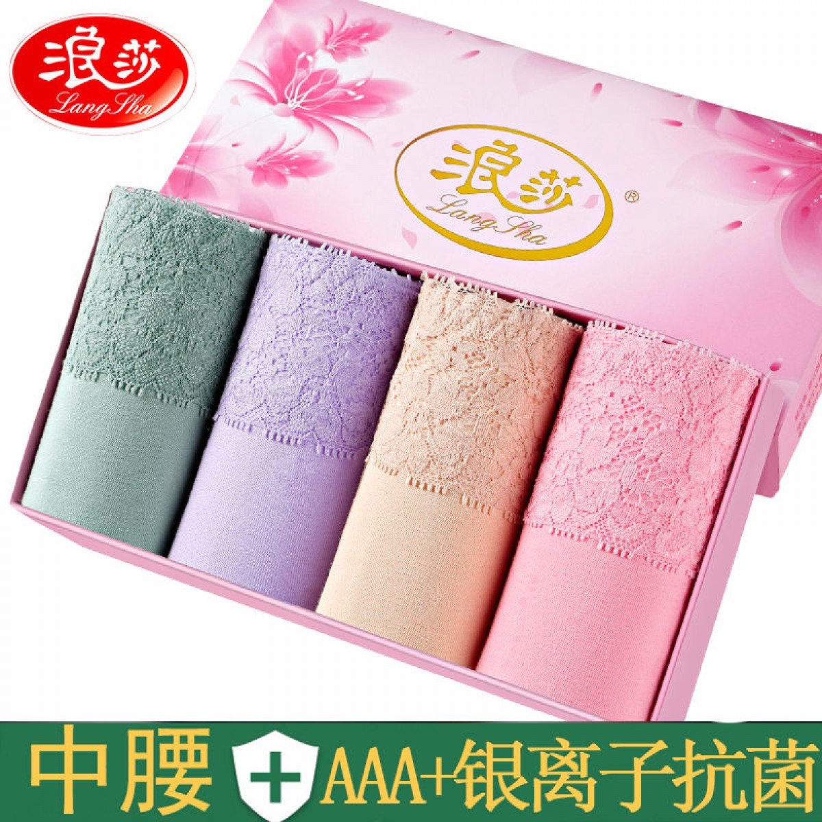 浪莎 4條 95%棉 中腰銀離子抗菌內(nèi)褲女蕾絲純色棉質(zhì)女士內(nèi)褲