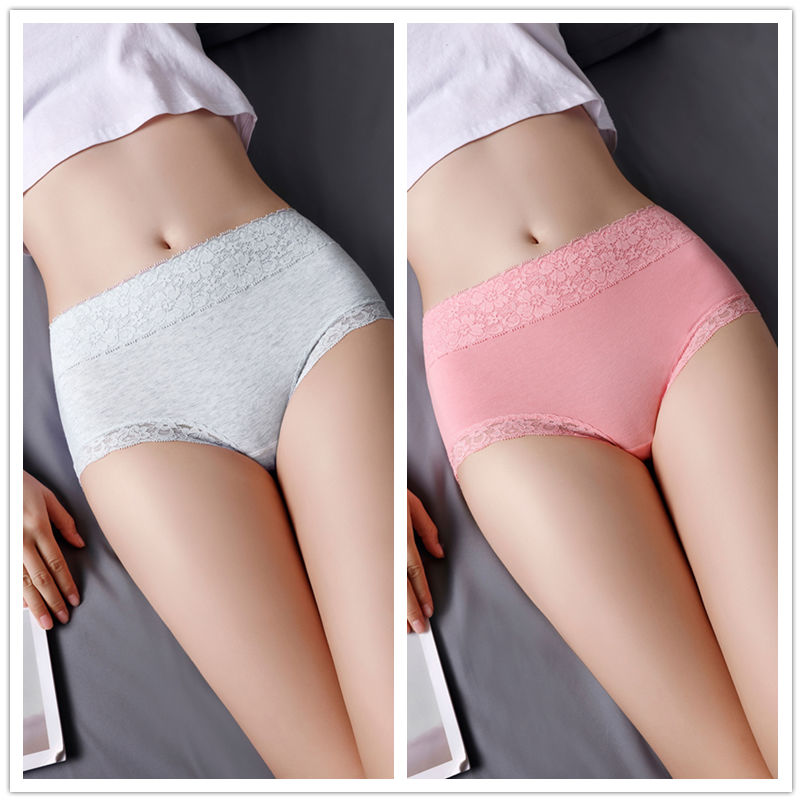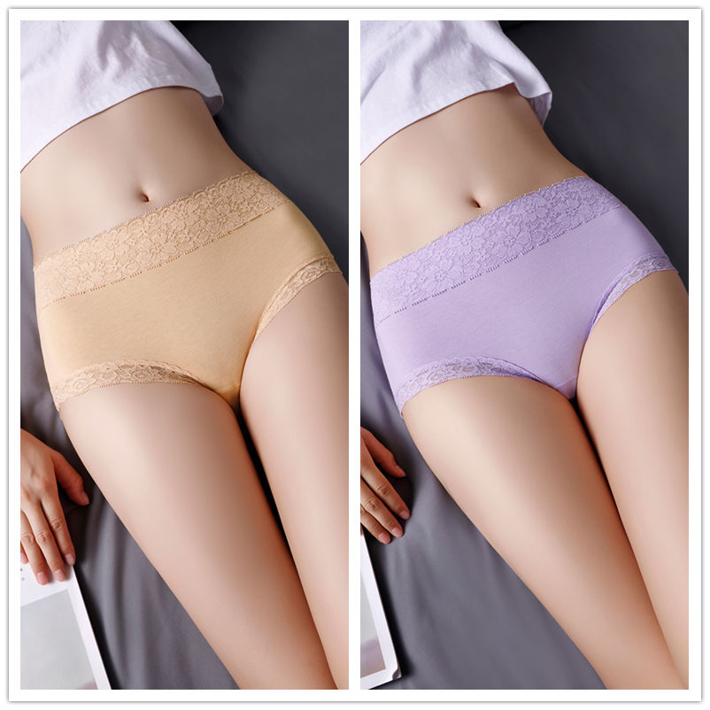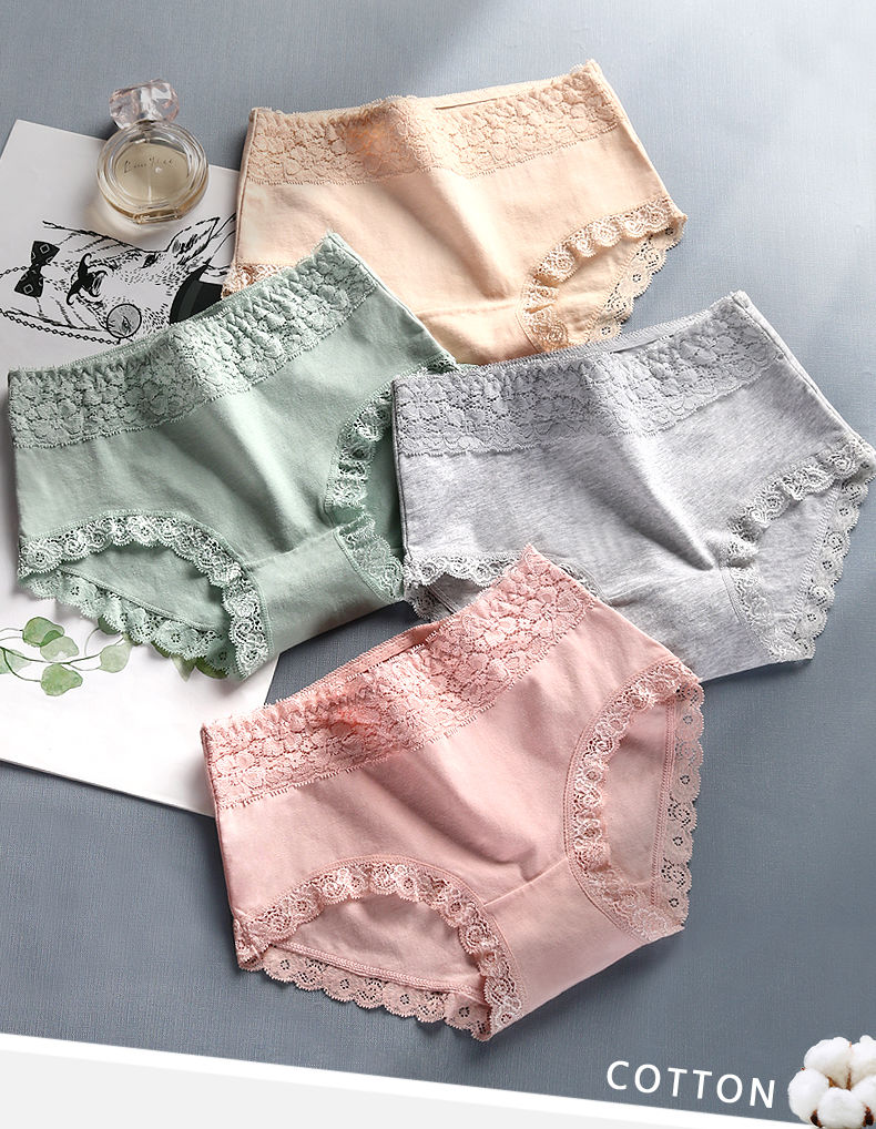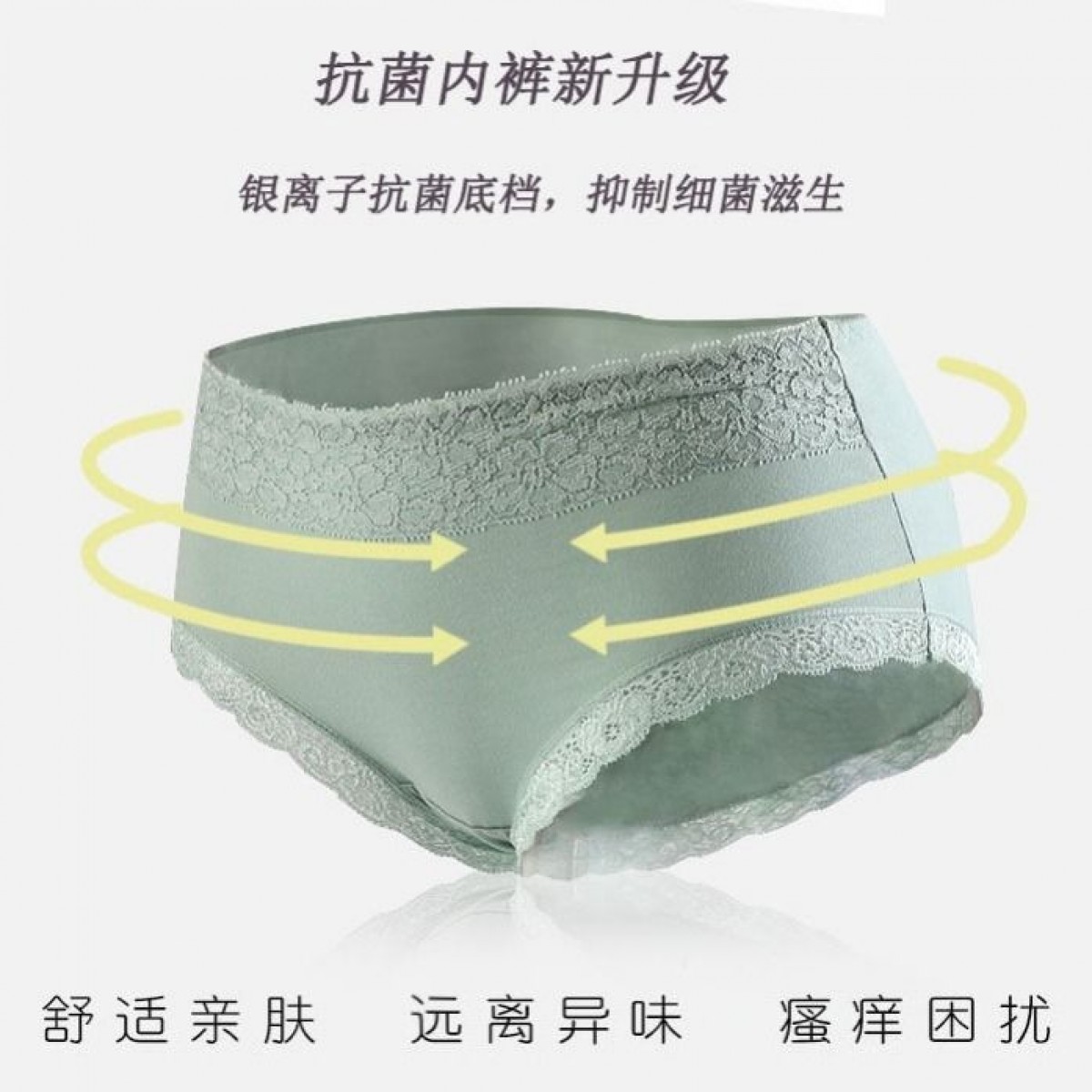 浪莎 4條 95%棉 中腰銀離子抗菌內(nèi)褲女蕾絲純色棉質(zhì)女士內(nèi)褲