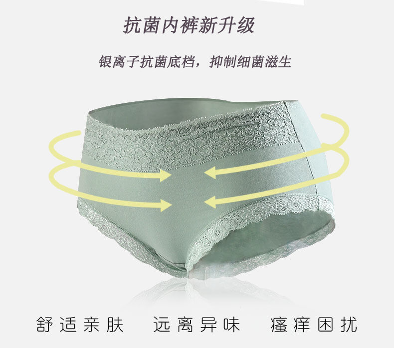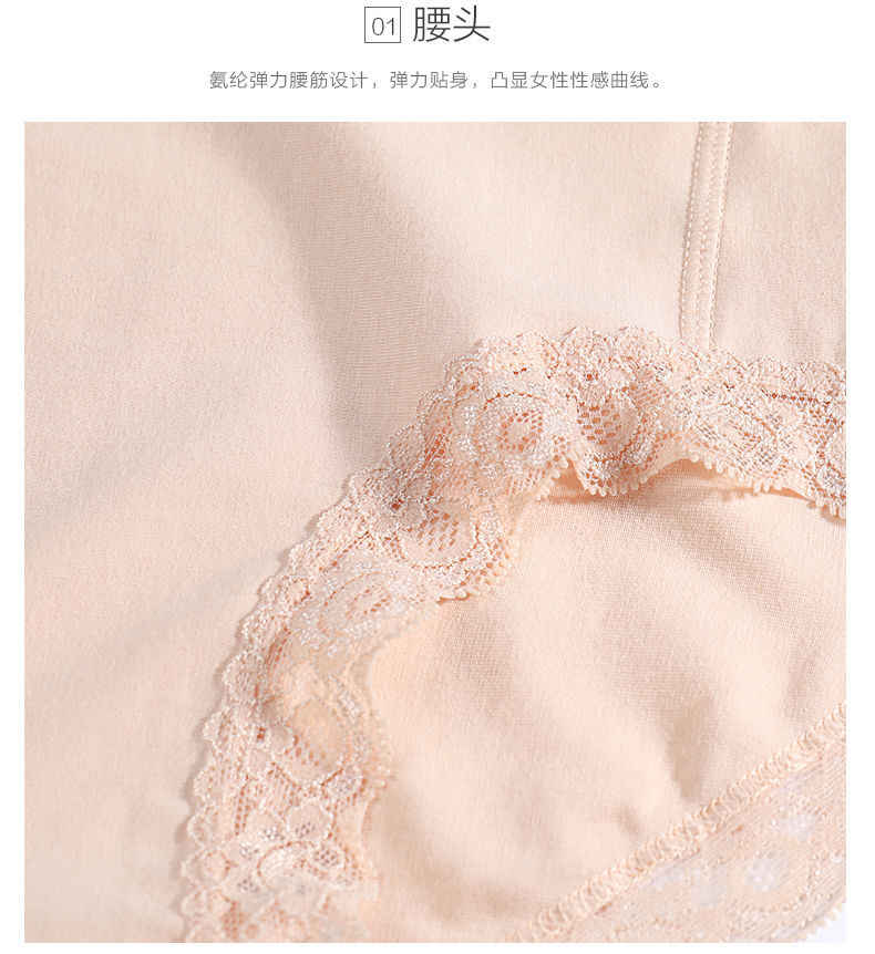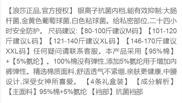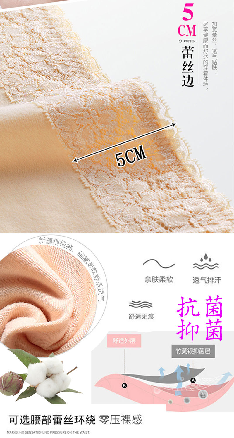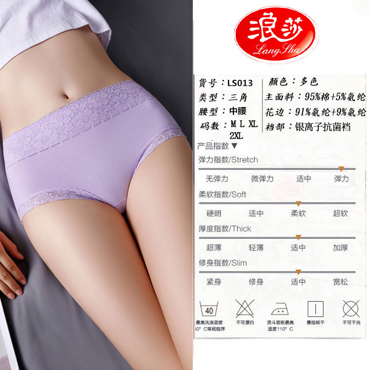 商品名稱:浪莎 4條 95%棉 中腰銀離子抗菌內(nèi)褲女蕾絲純色棉質(zhì)女士內(nèi)褲