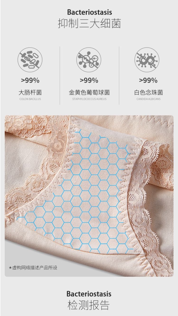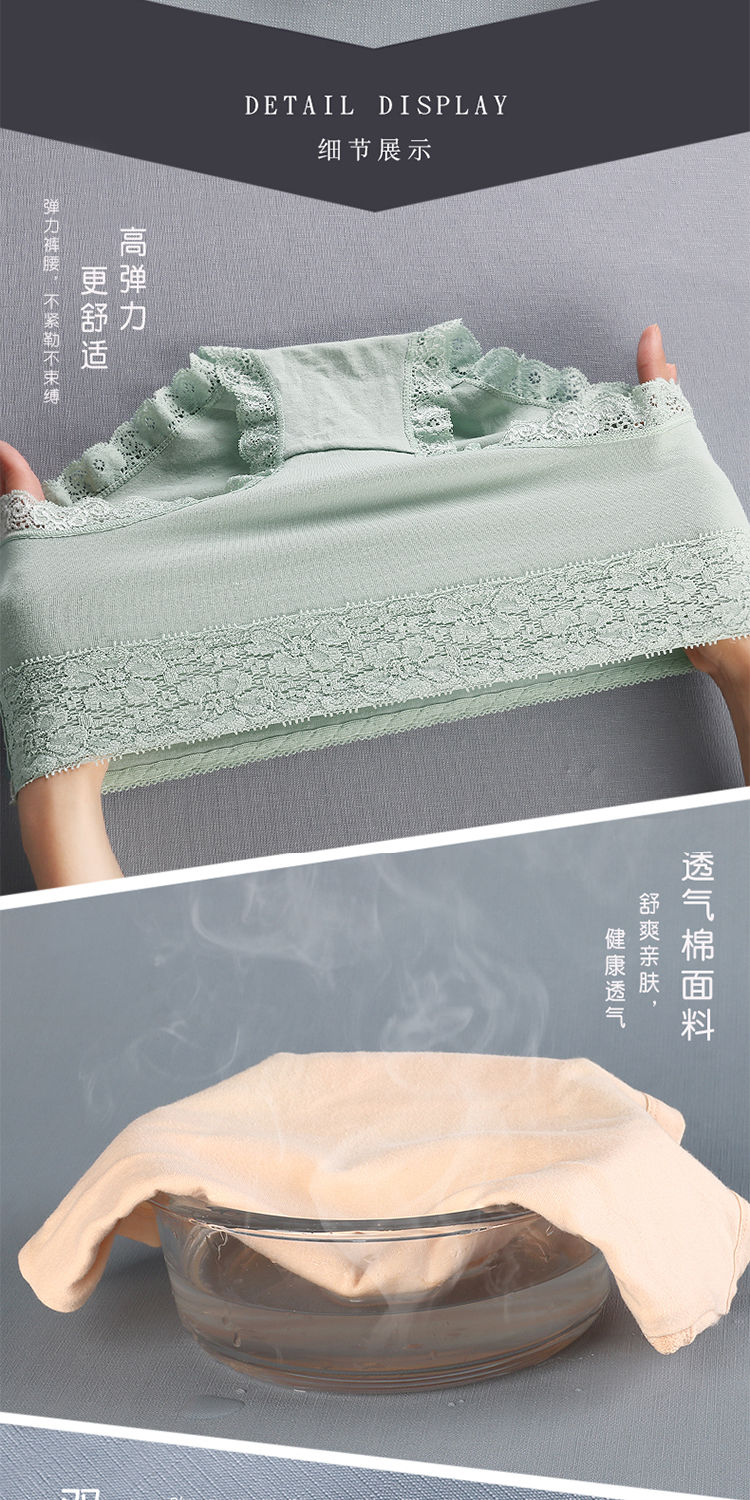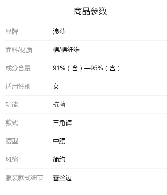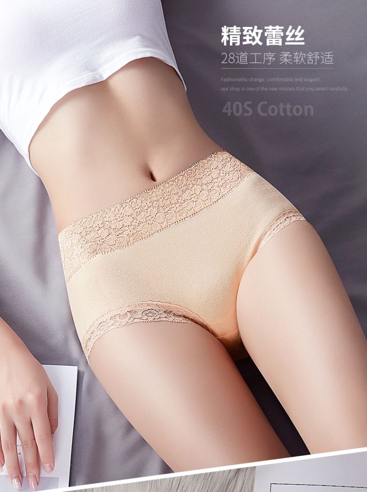 商品名稱:浪莎 4條 95%棉 中腰銀離子抗菌內(nèi)褲女蕾絲純色棉質(zhì)女士內(nèi)褲