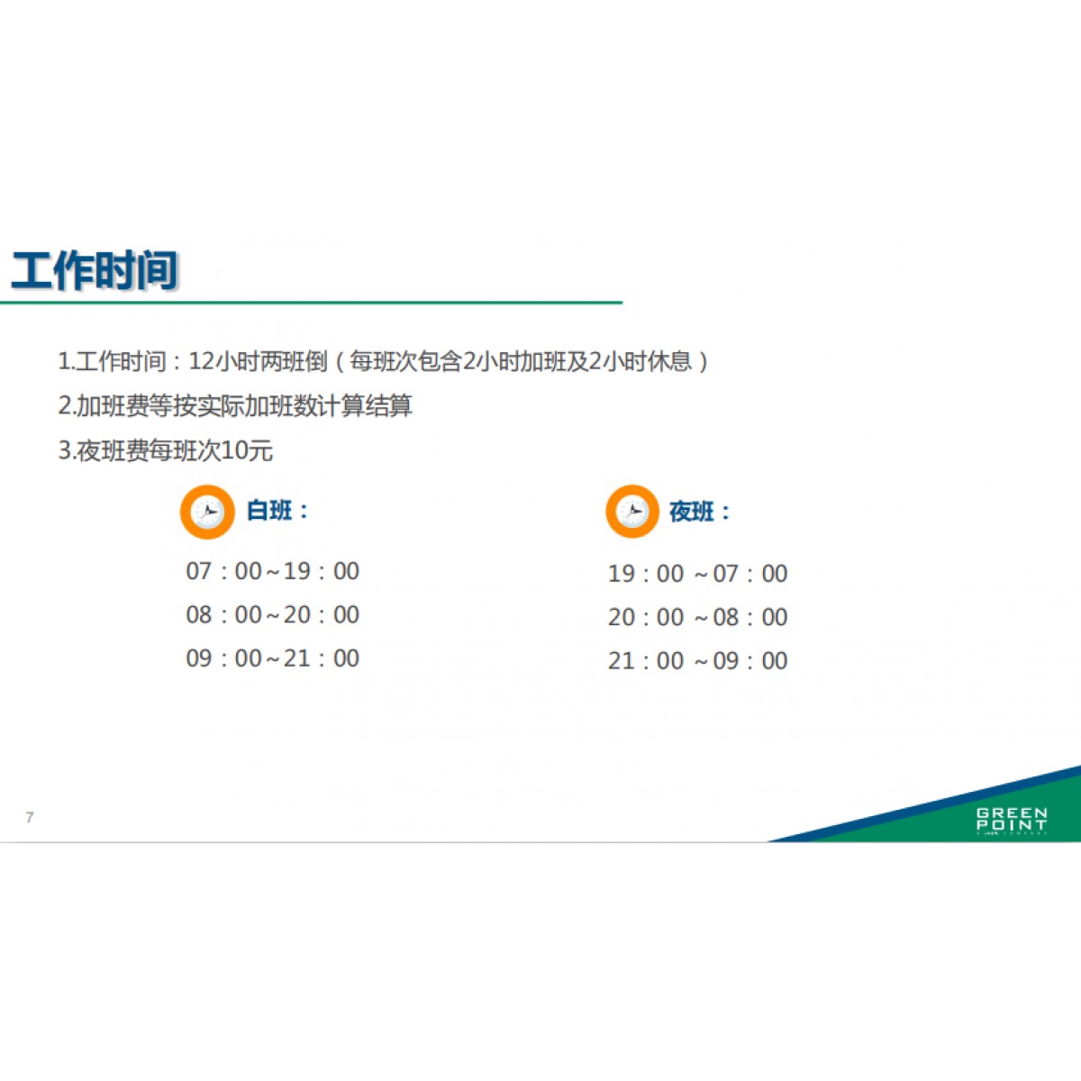 2.免費提供吃住,工作時間12小時兩班倒,夜班費每次10元。