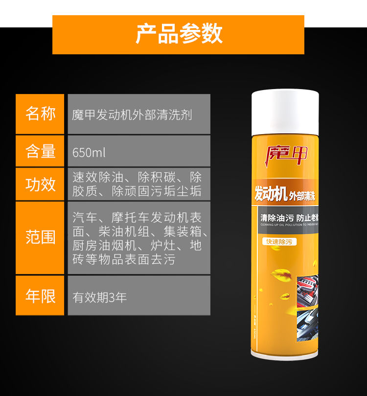 商品名稱:汽車發(fā)動(dòng)機(jī)外部清洗劑引擎機(jī)艙倉外表去重油污泡沫清潔液機(jī)頭水 650ml/瓶