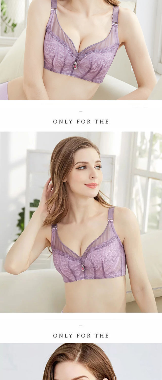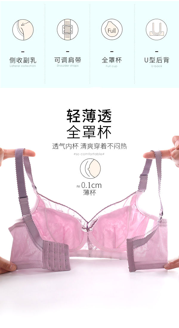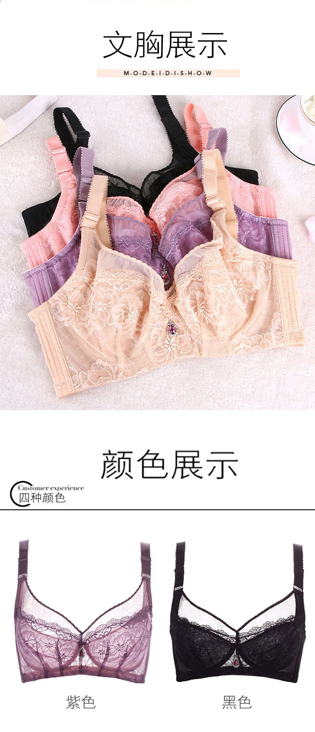 商品名稱:無鋼圈超薄款文胸聚攏大碼胸罩蕾絲內(nèi)衣女士套裝性感大胸顯小夏季