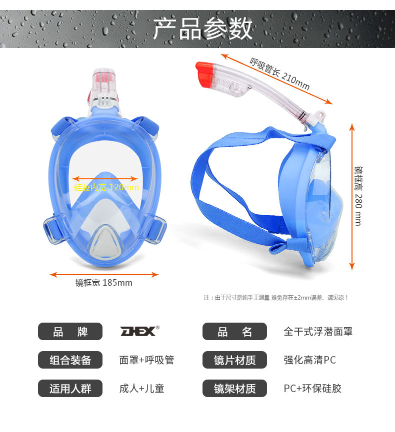 商品名稱:DEX戶外運(yùn)動(dòng)潛水裝備全干式浮潛三寶護(hù)目鏡游泳沖浪近視浮潛面鏡