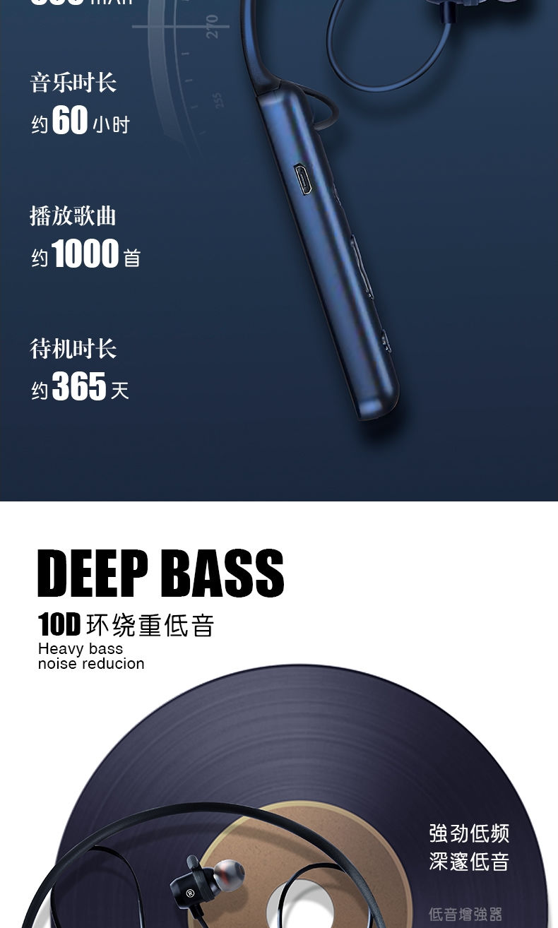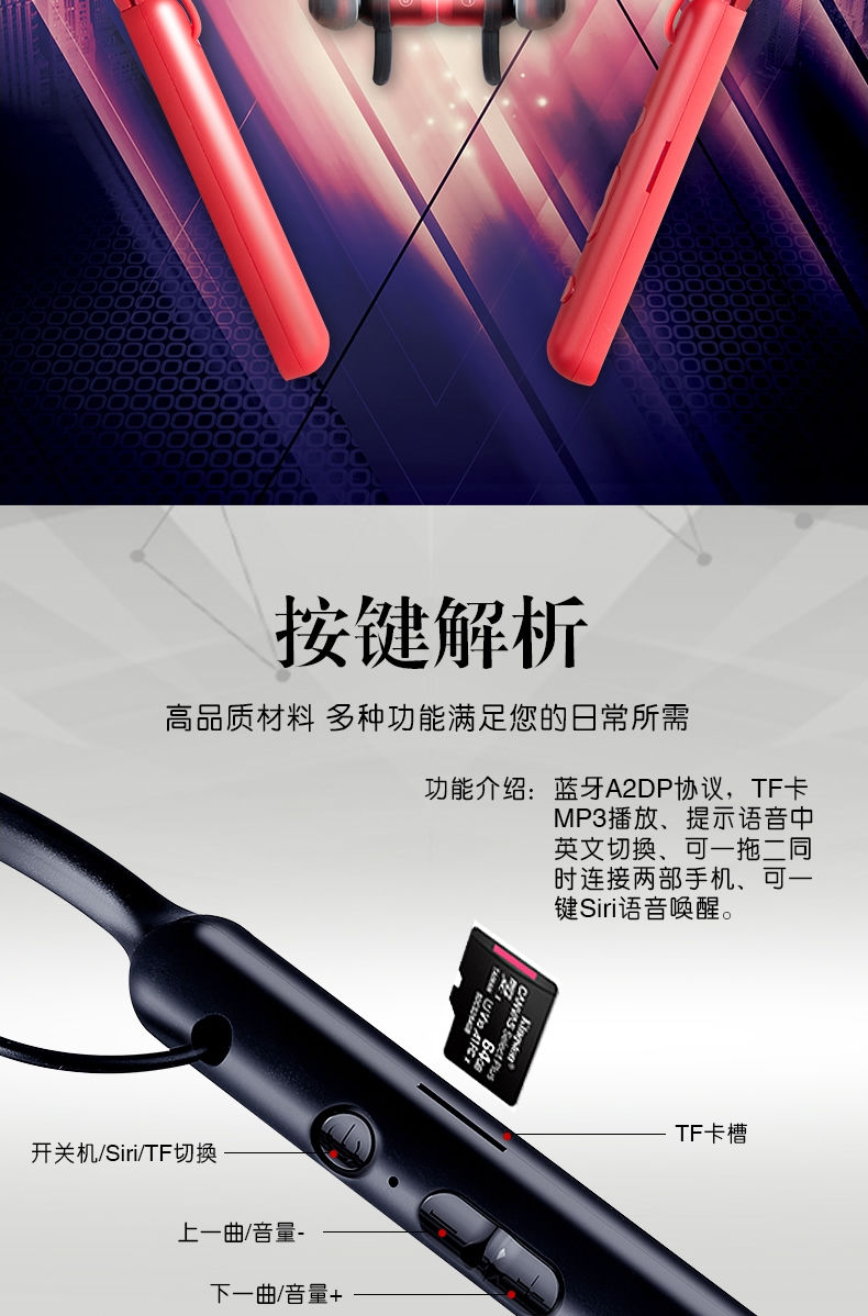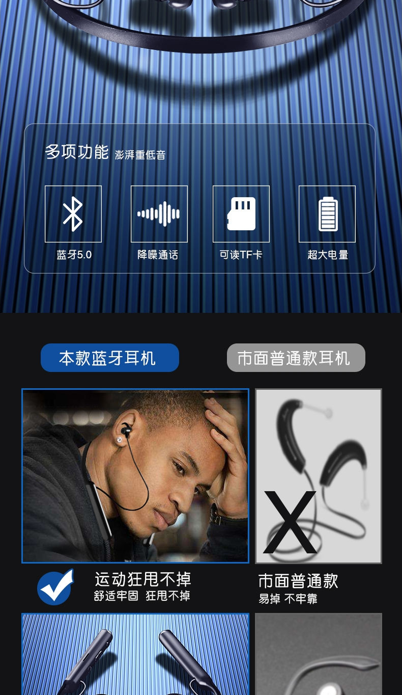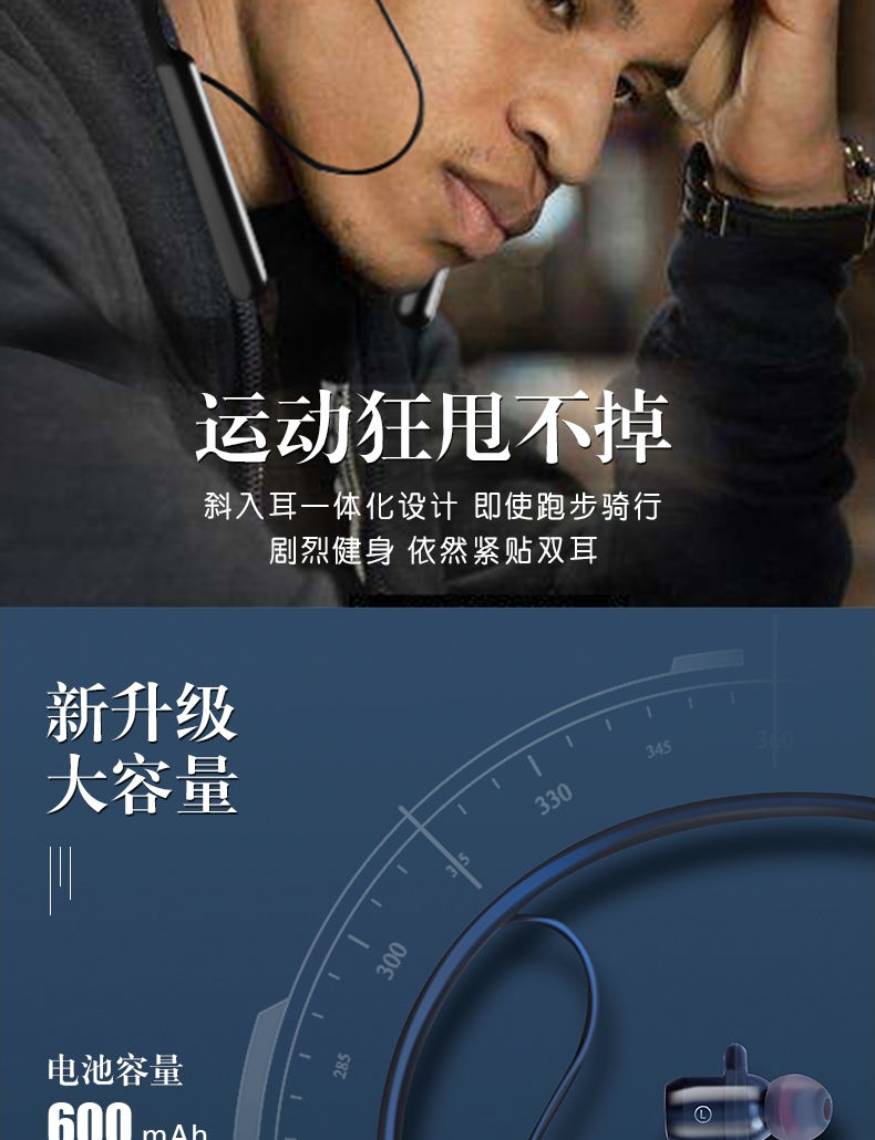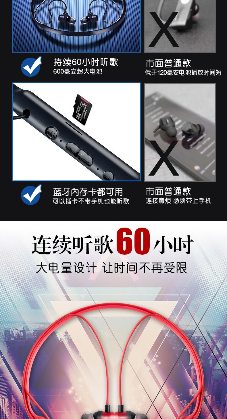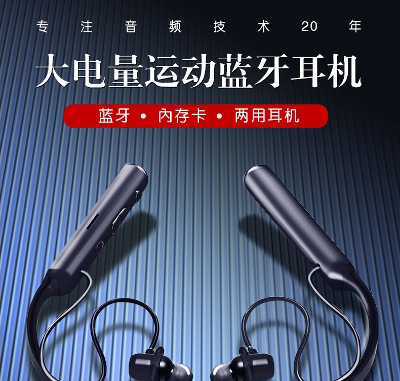 商品名稱:可插卡藍牙耳機頸掛式雙耳無線運動跑步超長待機蘋果VIVO華為通用