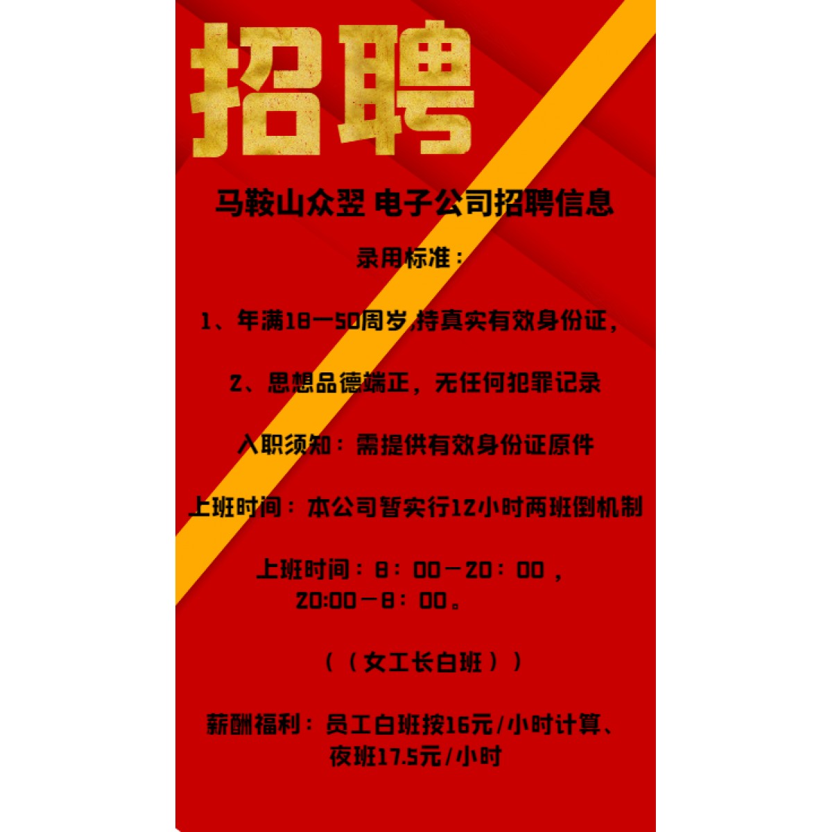 馬鞍山眾翌 電子有限責(zé)任公司招聘信息