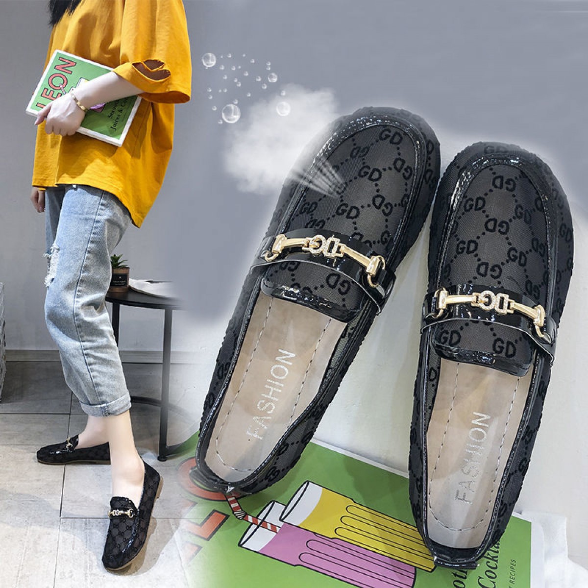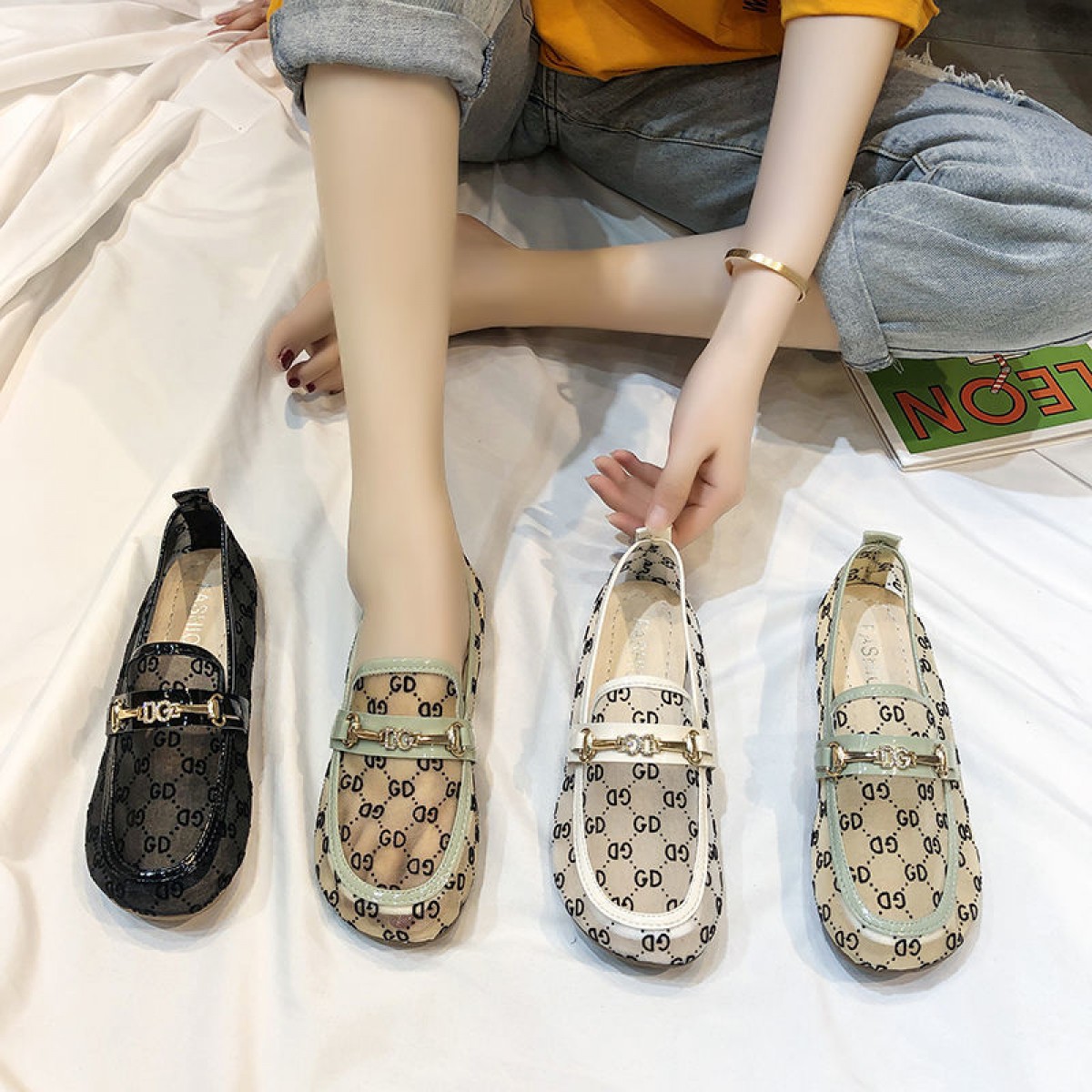 2020夏季新款平底網(wǎng)面套腳一腳蹬女單鞋百搭網(wǎng)紅孕婦懶人豆豆鞋潮
