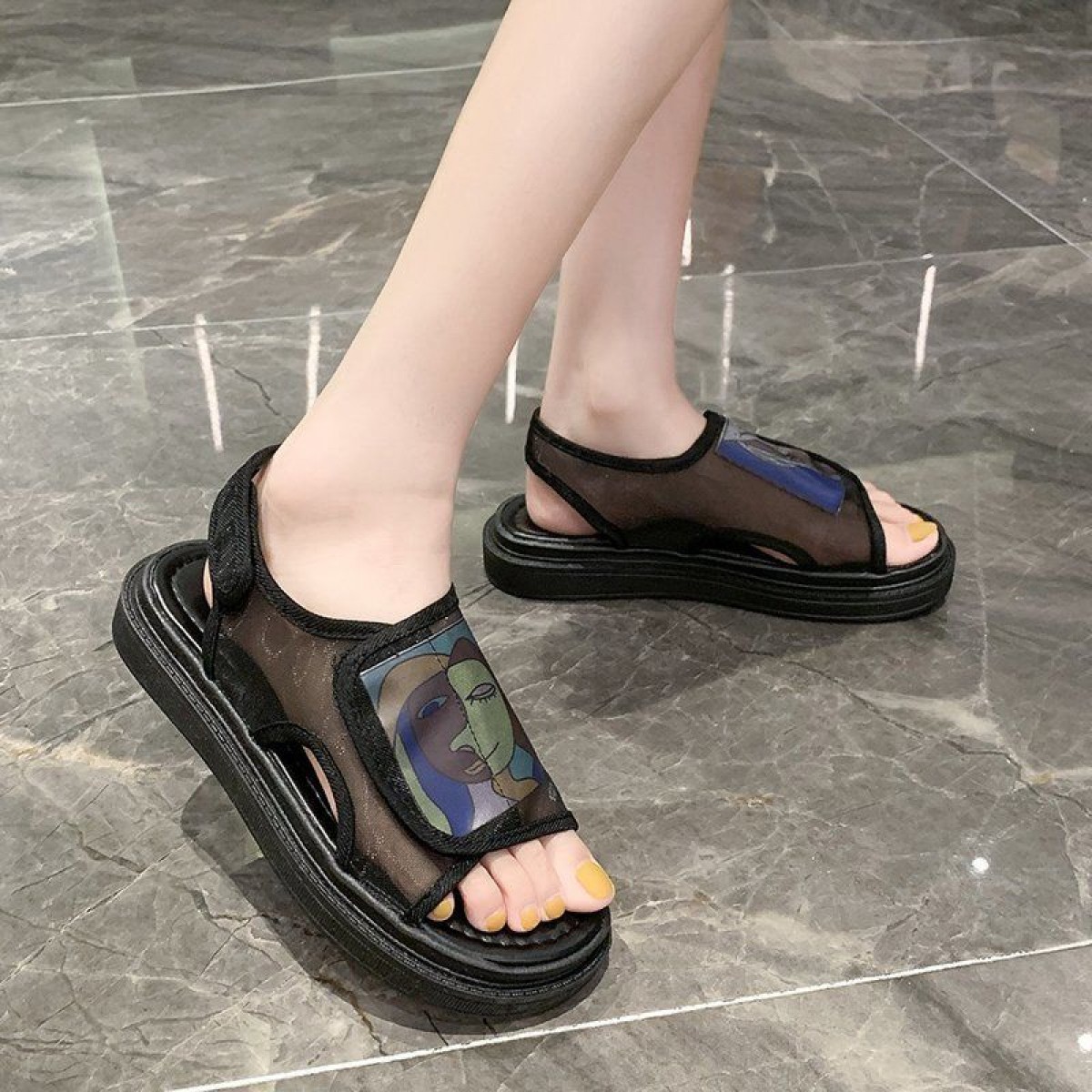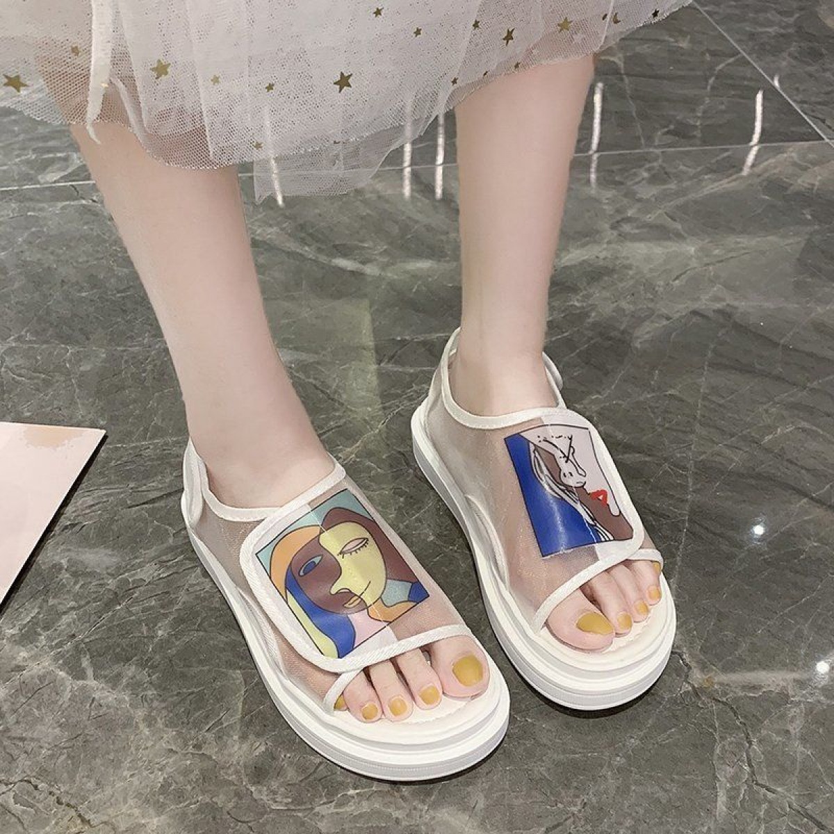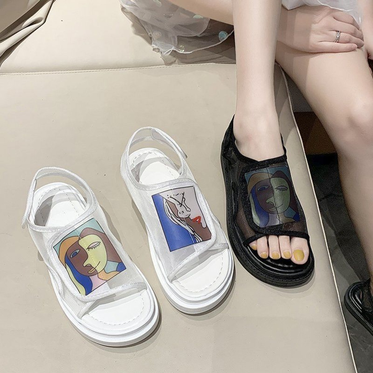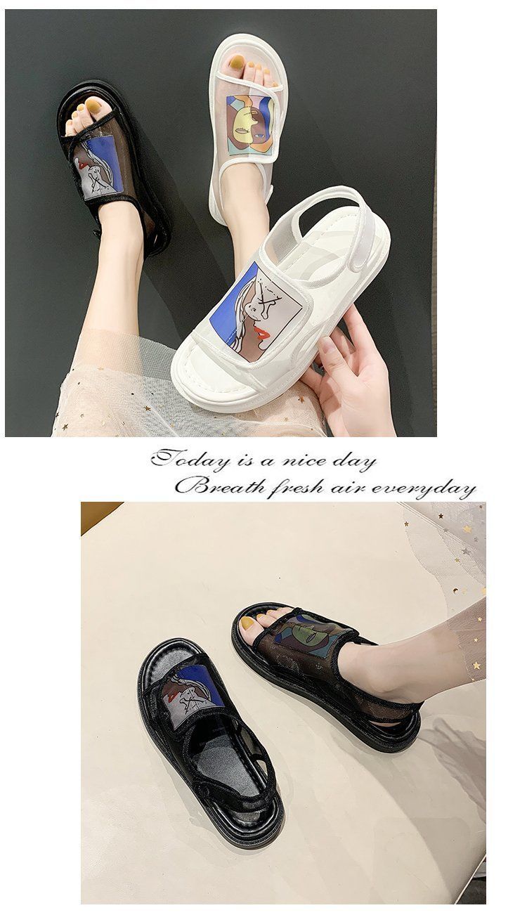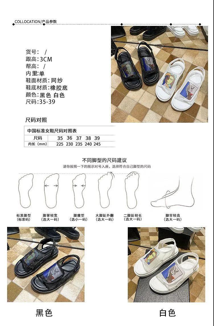 商品名稱(chēng):鞋子女夏2020年新款學(xué)生百搭歐根紗網(wǎng)鞋平底一字帶仙女涼鞋ins潮