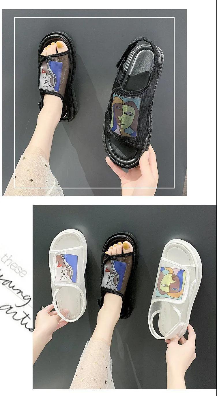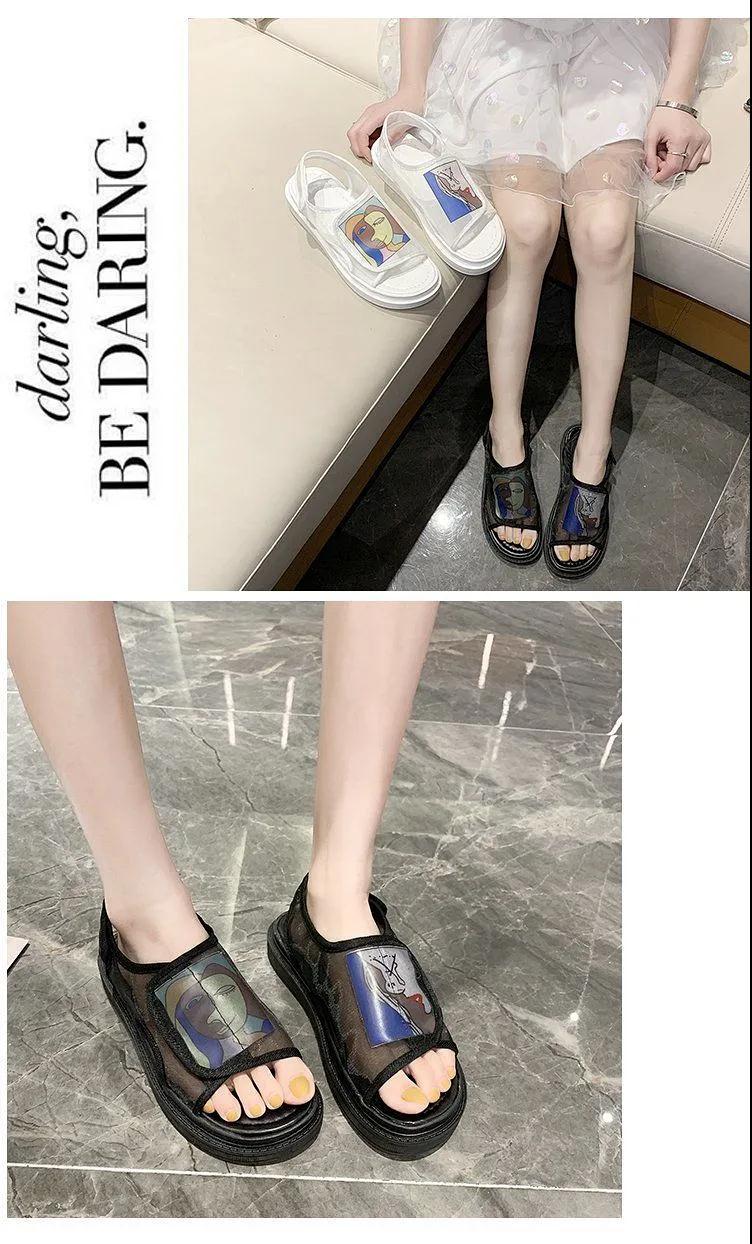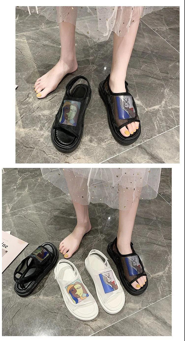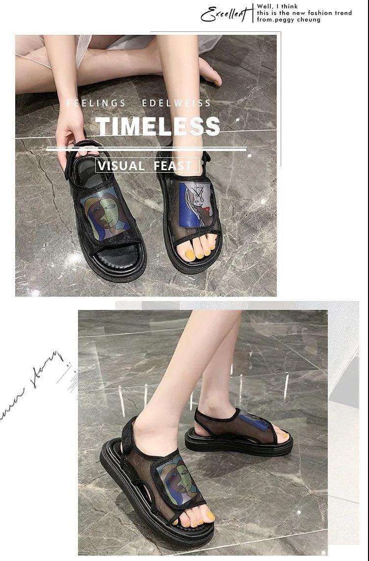 鞋子女夏2020年新款學(xué)生百搭歐根紗網(wǎng)鞋平底一字帶仙女涼鞋ins潮