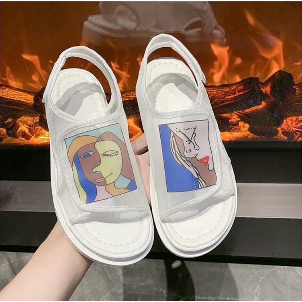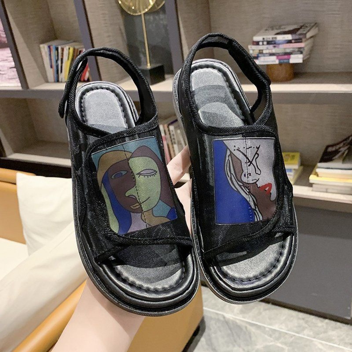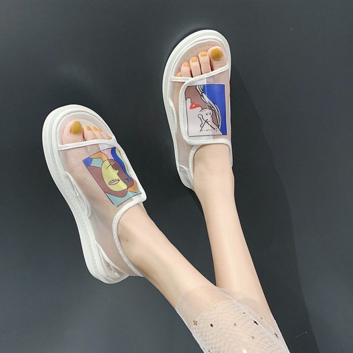 鞋子女夏2020年新款學(xué)生百搭歐根紗網(wǎng)鞋平底一字帶仙女涼鞋ins潮