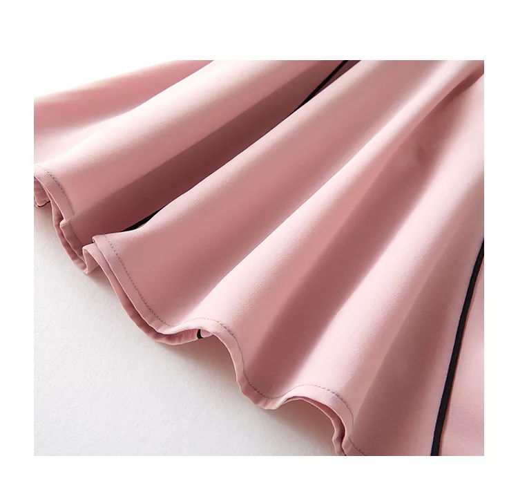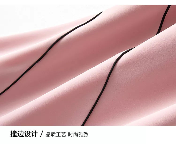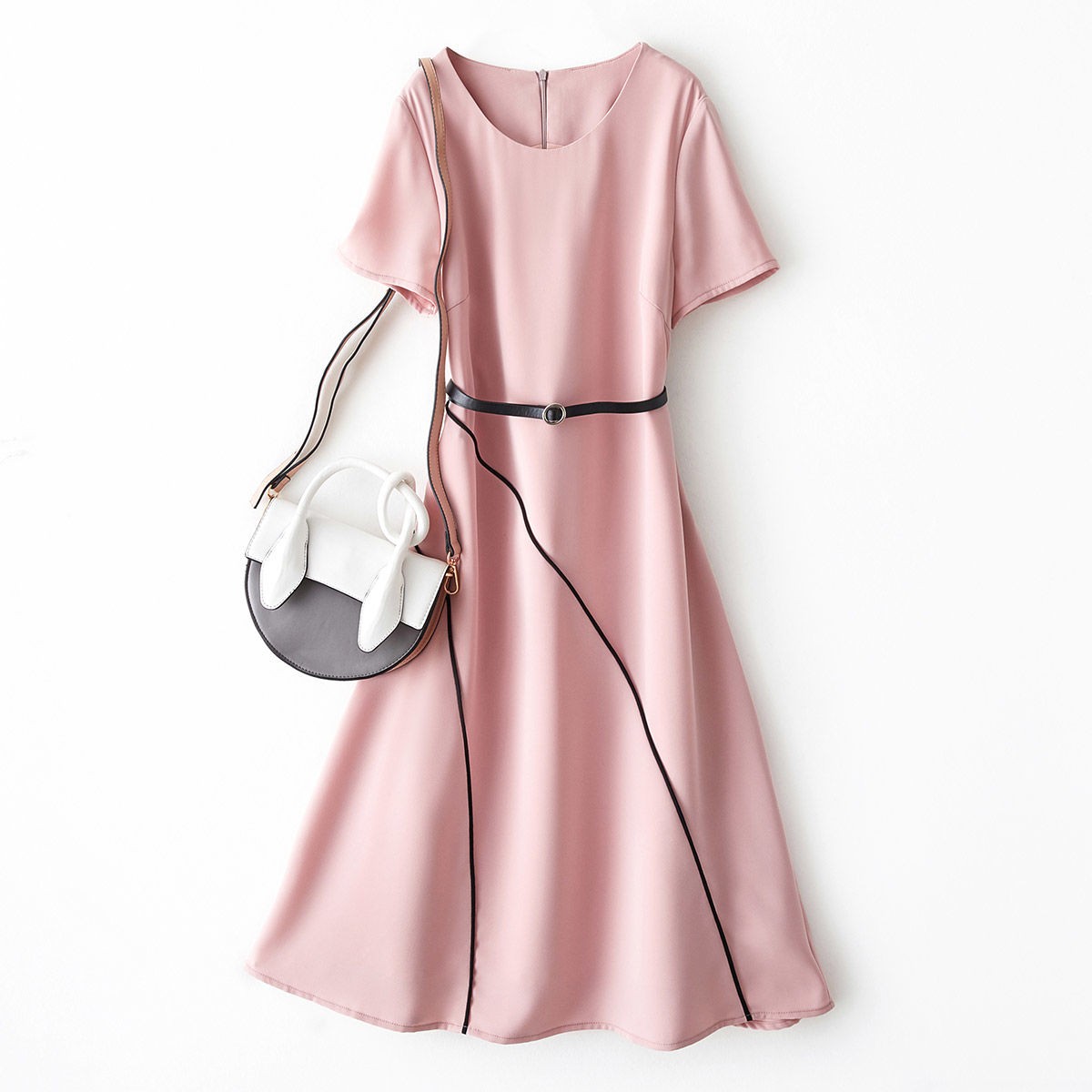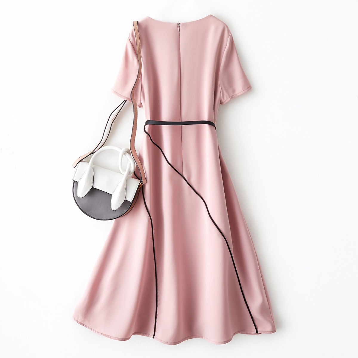 海謐氣質優(yōu)雅連衣裙女2020年夏季新款圓領休閑短袖撞邊收腰A字裙