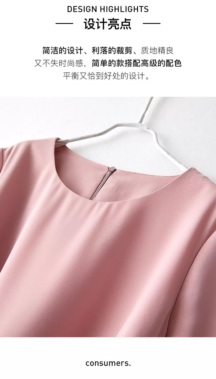 商品名稱:海謐氣質優(yōu)雅連衣裙女2020年夏季新款圓領休閑短袖撞邊收腰A字裙