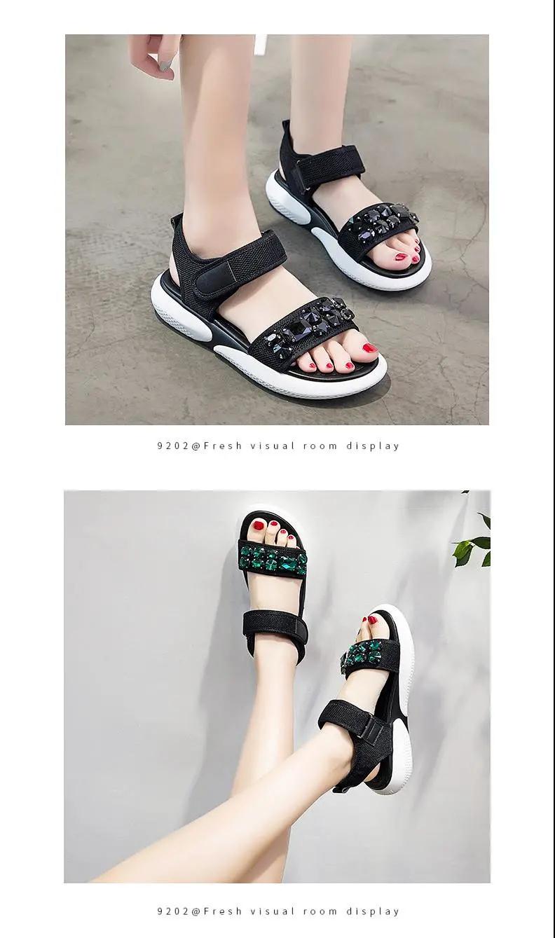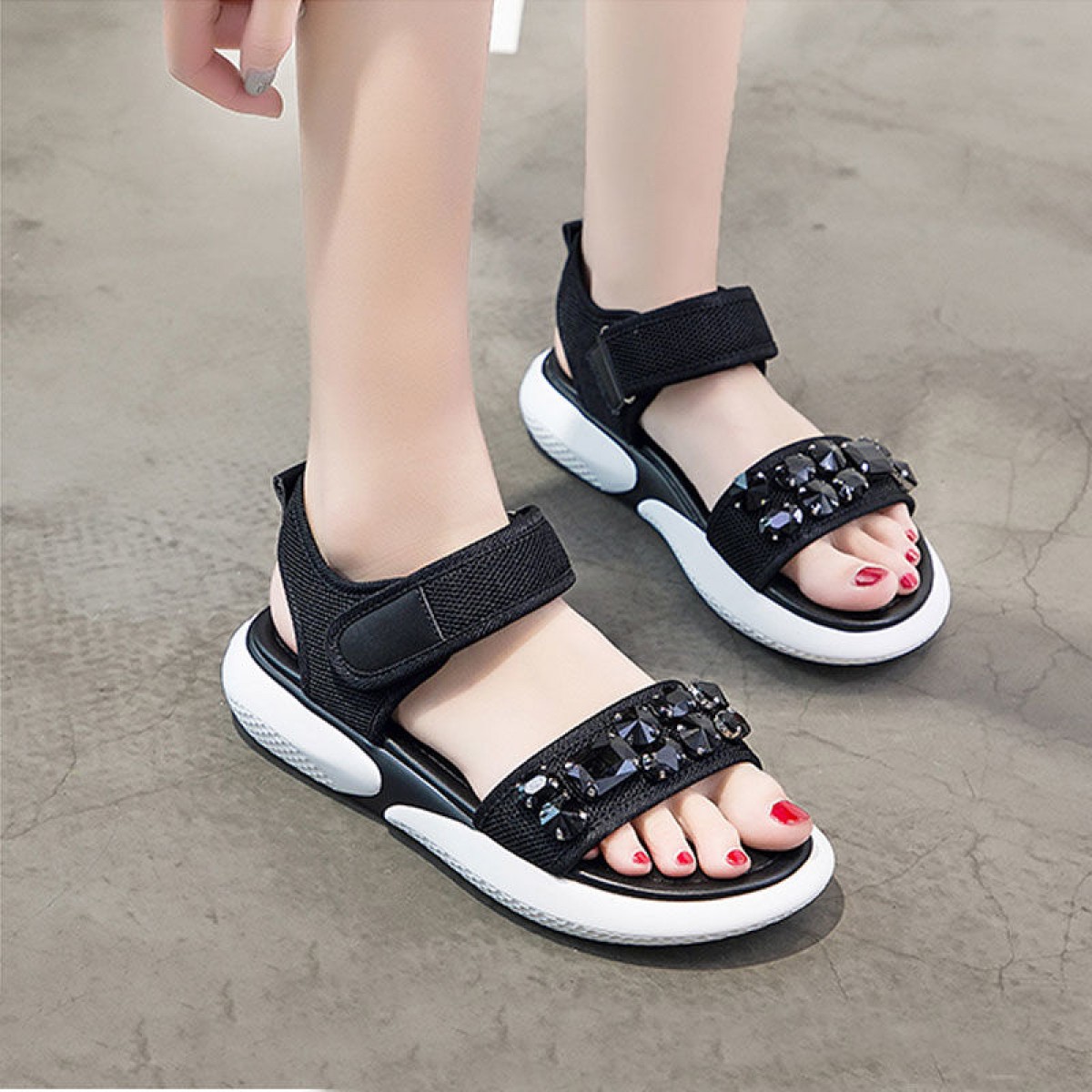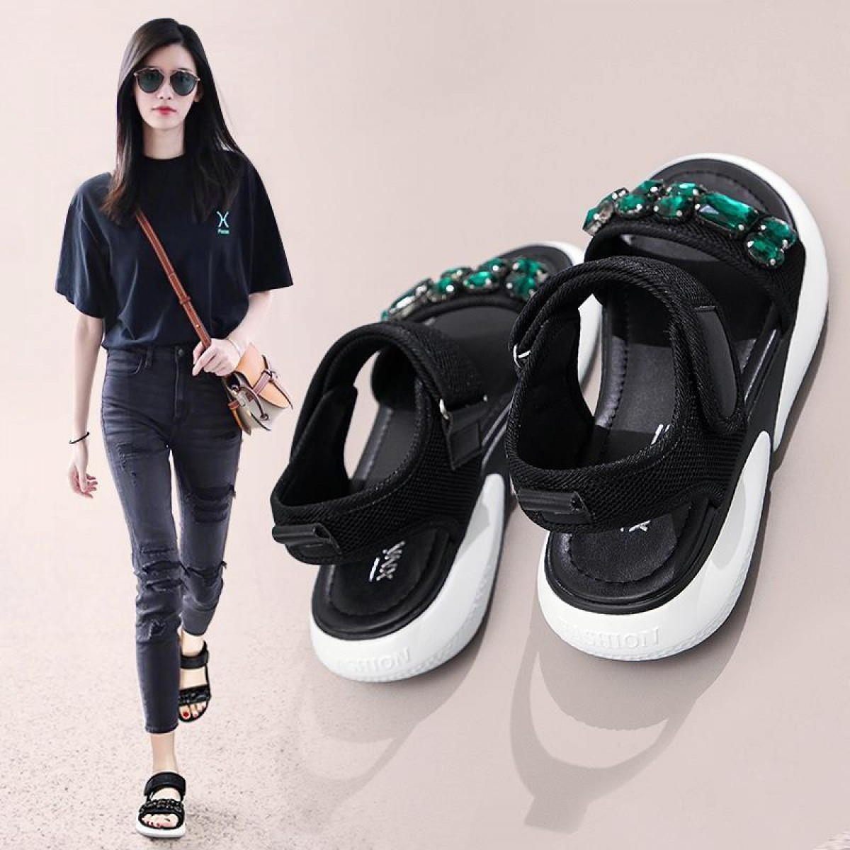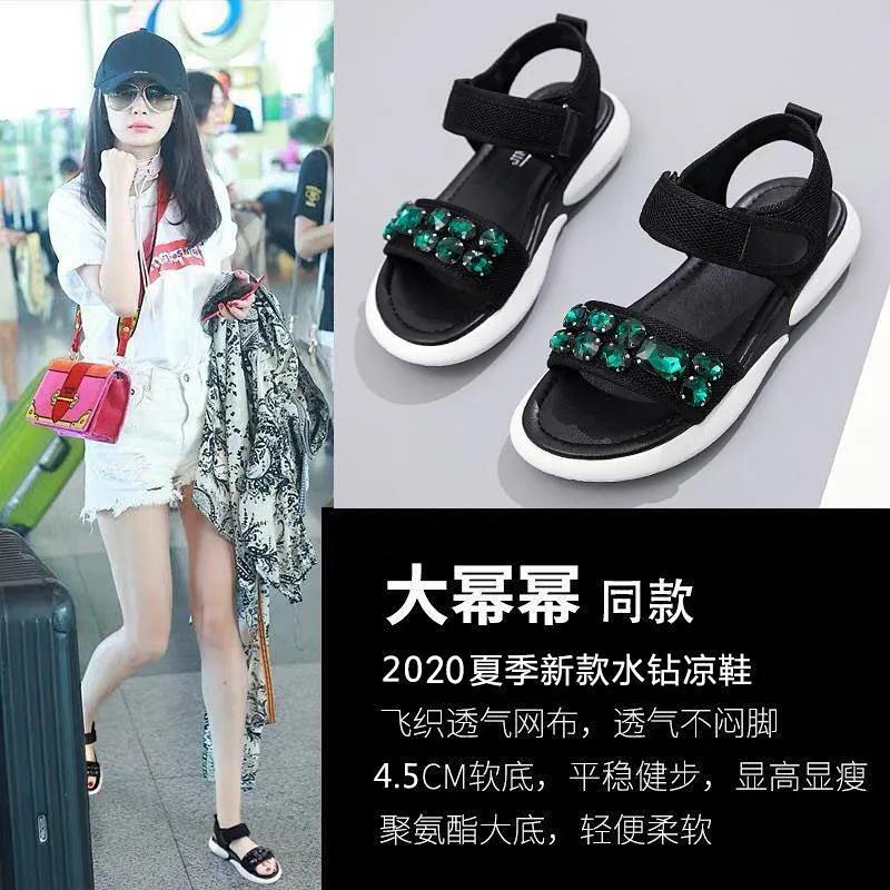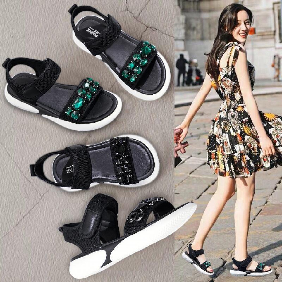 商品名稱:夏天涼鞋女仙女風2020年新款羅馬時裝百搭夏季水鉆平底運動涼鞋女