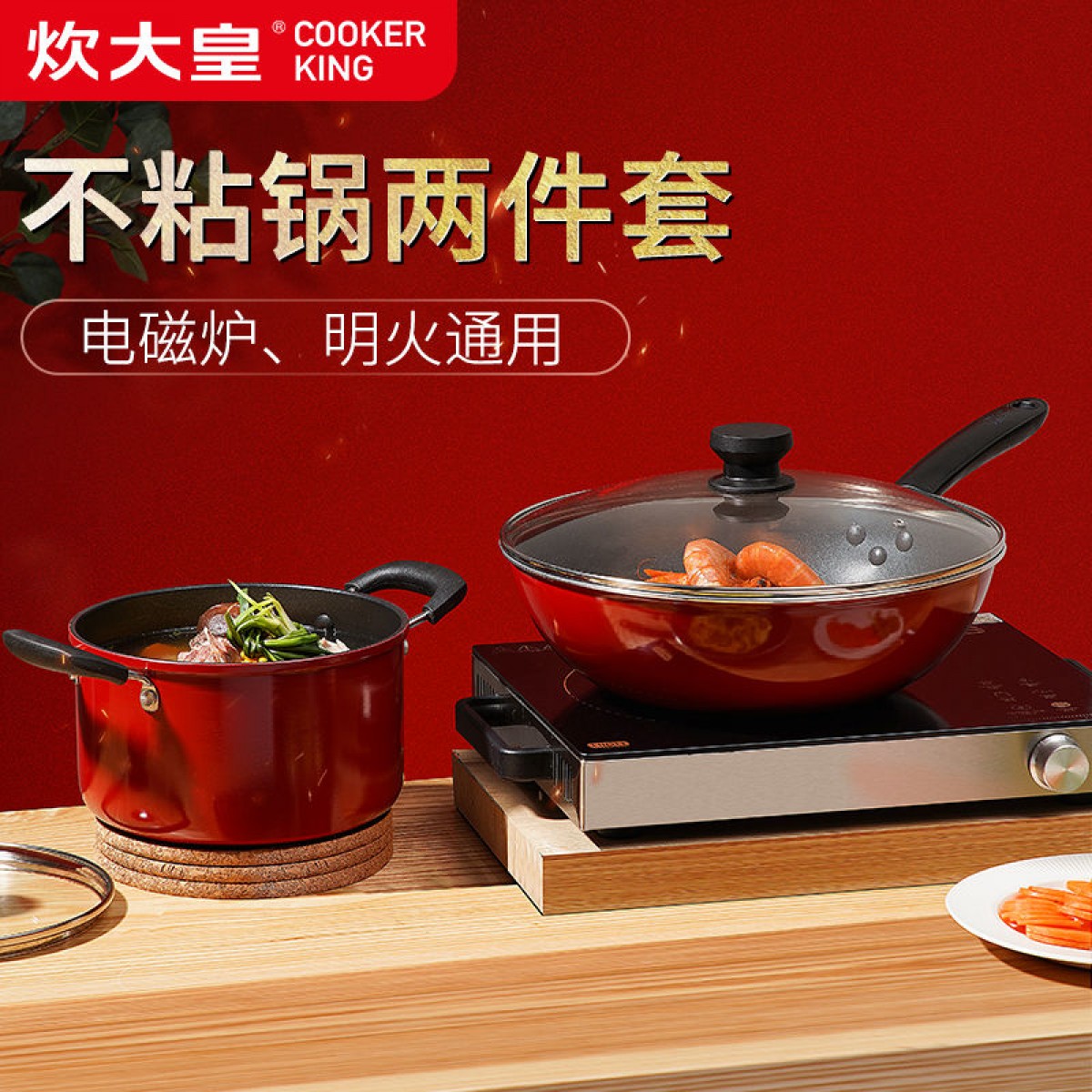 商品名稱:炊大皇廚具套裝全套家用不粘鍋鍋具兩件套廚房電磁爐炒鍋組合