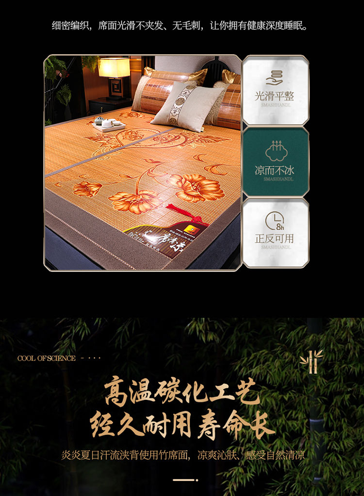商品名稱:涼席竹席碳化竹涼席子三件套單雙人學(xué)生宿舍雙面折疊竹席涼席