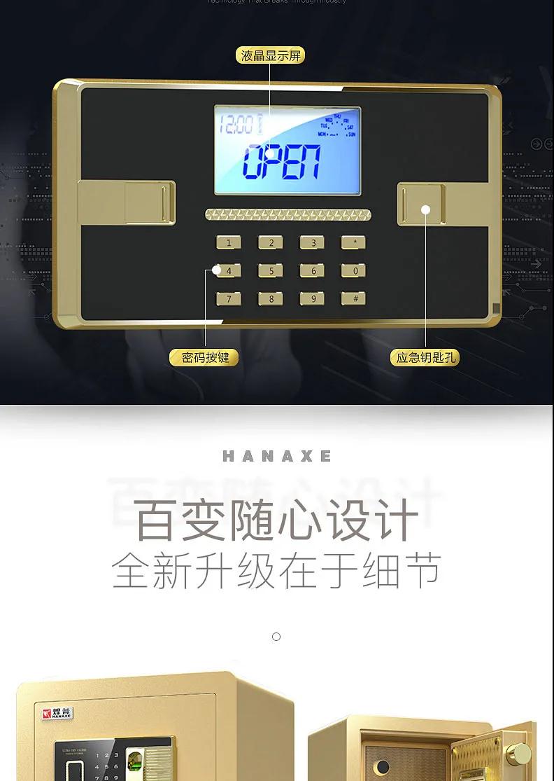 商品名稱:全鋼保險(xiǎn)柜家用小型迷你可入墻床頭密碼箱辦公防盜指紋保險(xiǎn)箱