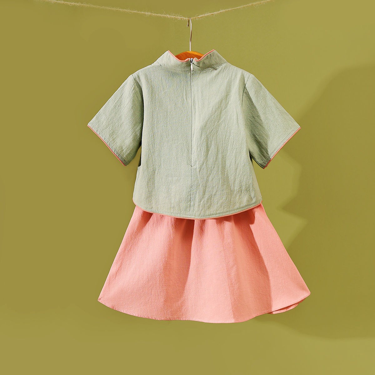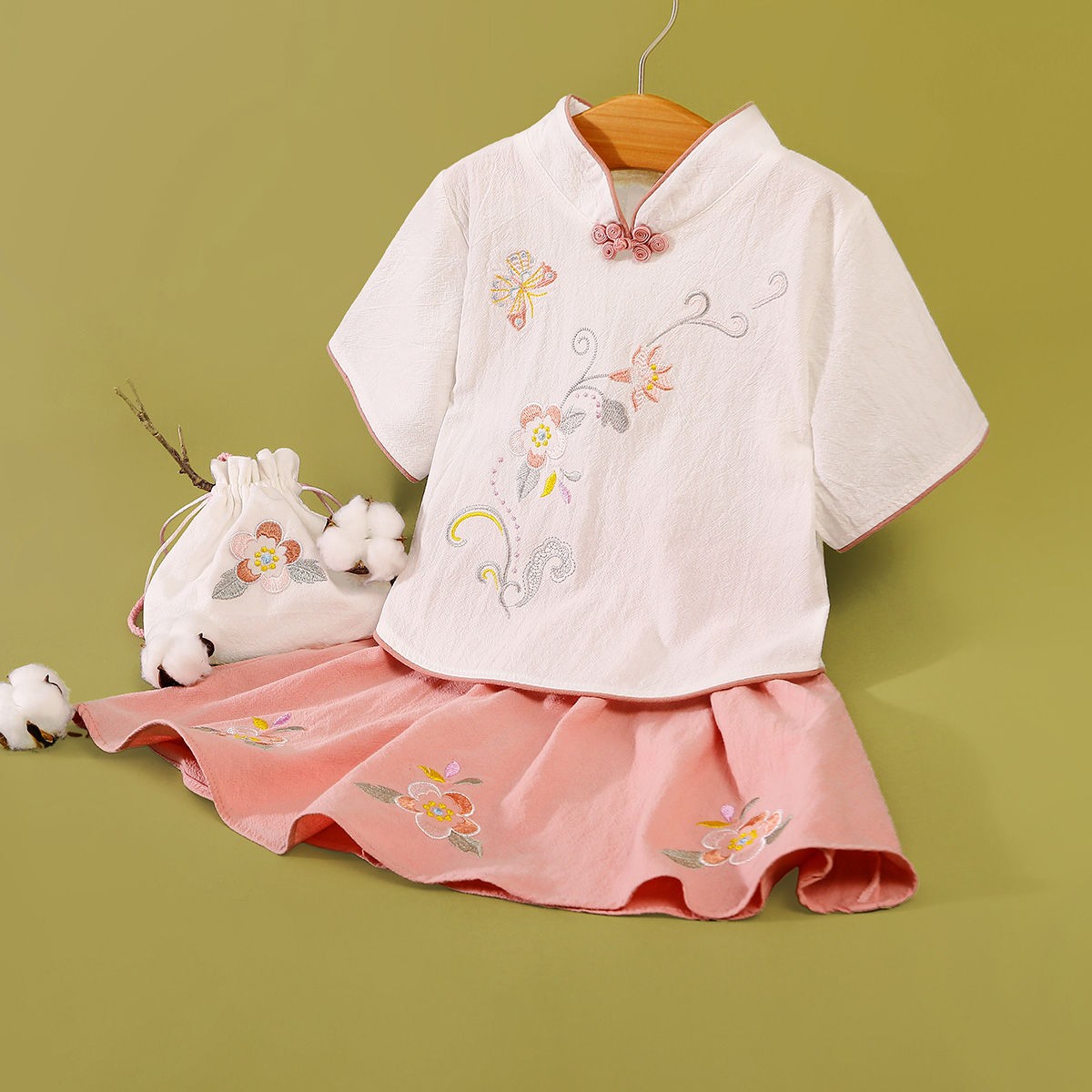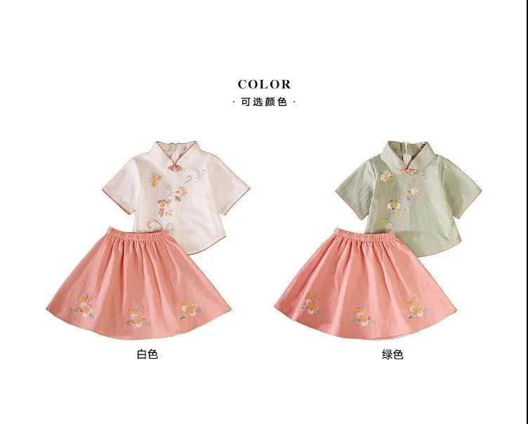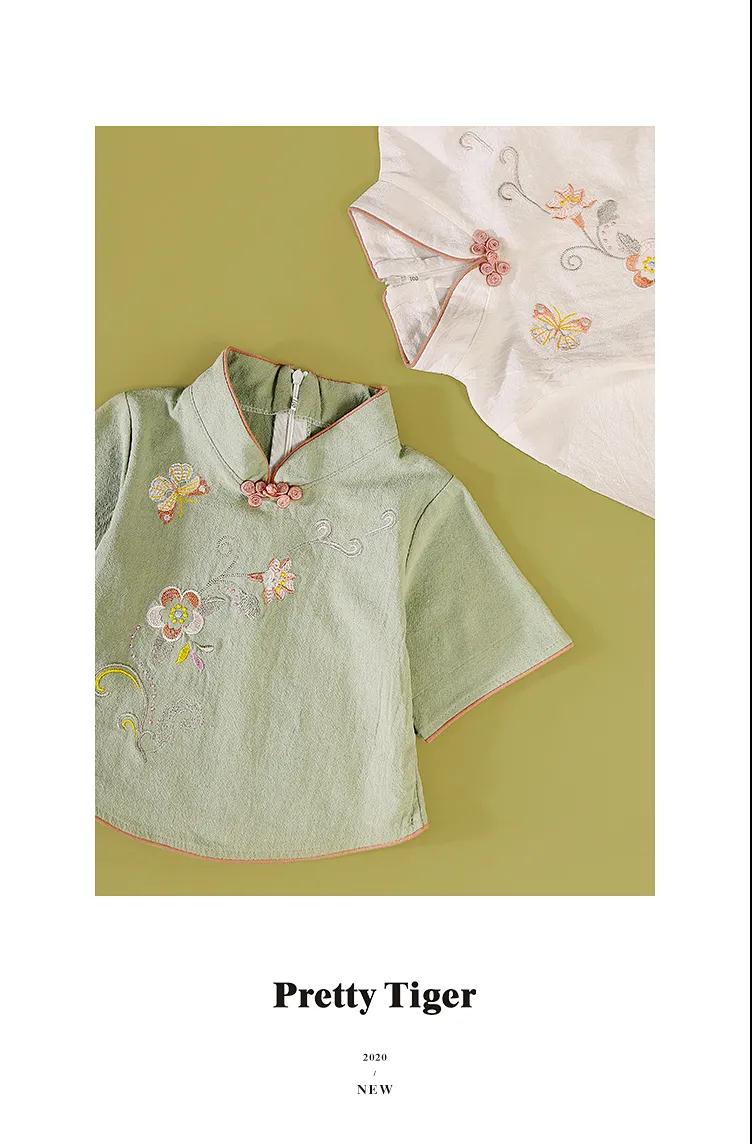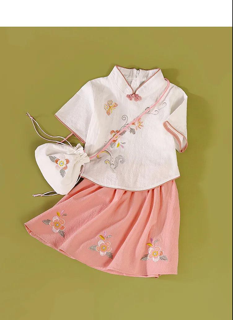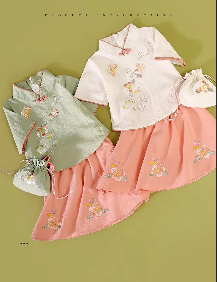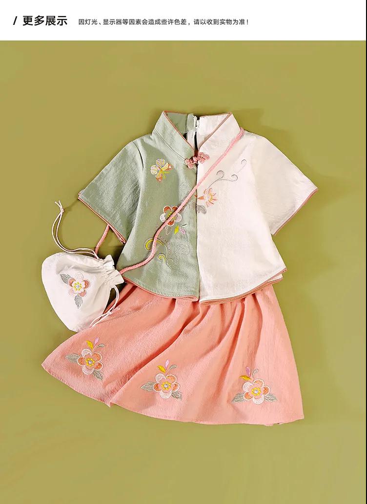商品名稱:童裝女童中國(guó)風(fēng)春夏新款中童中式復(fù)古旗袍刺繡兒童漢服套裝