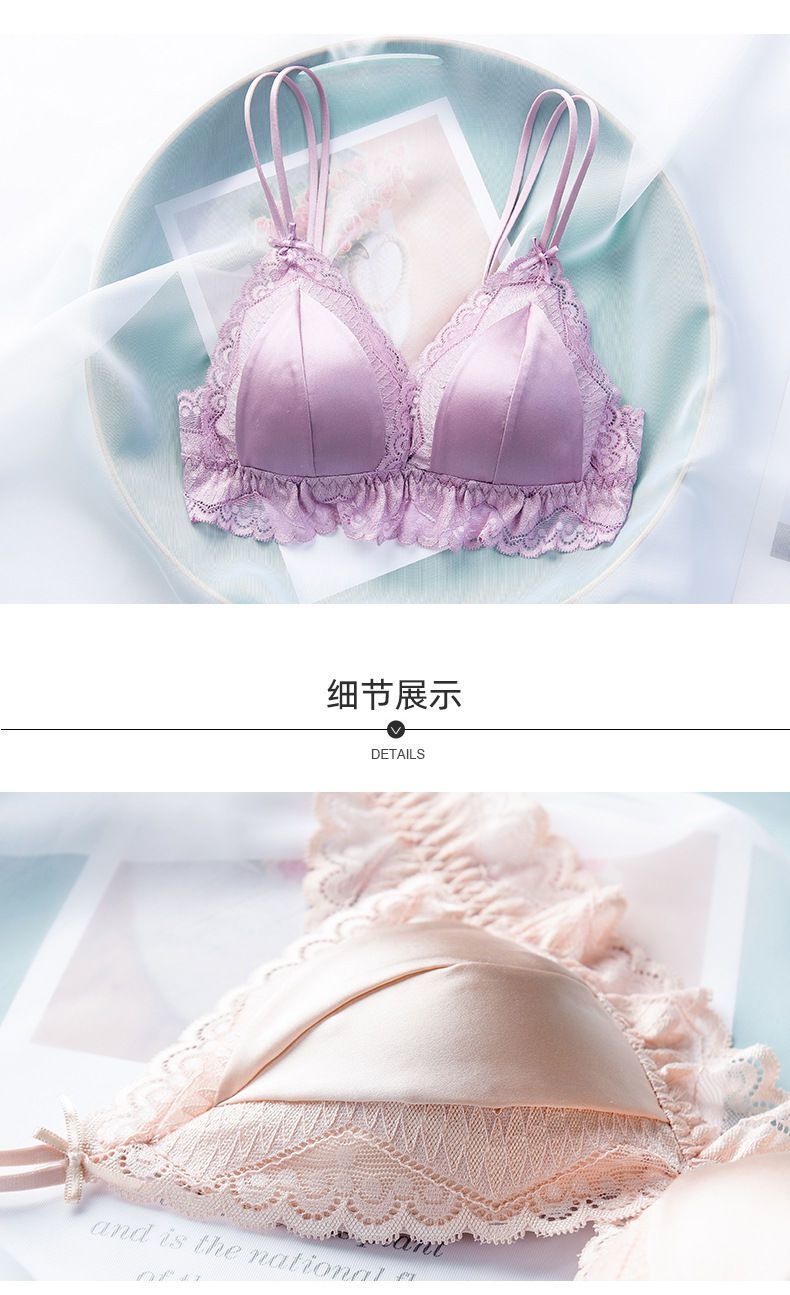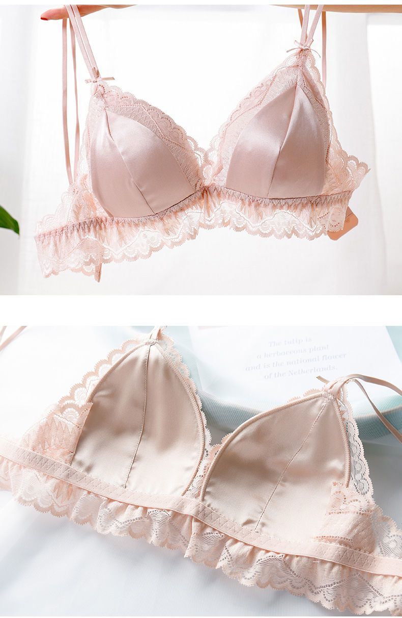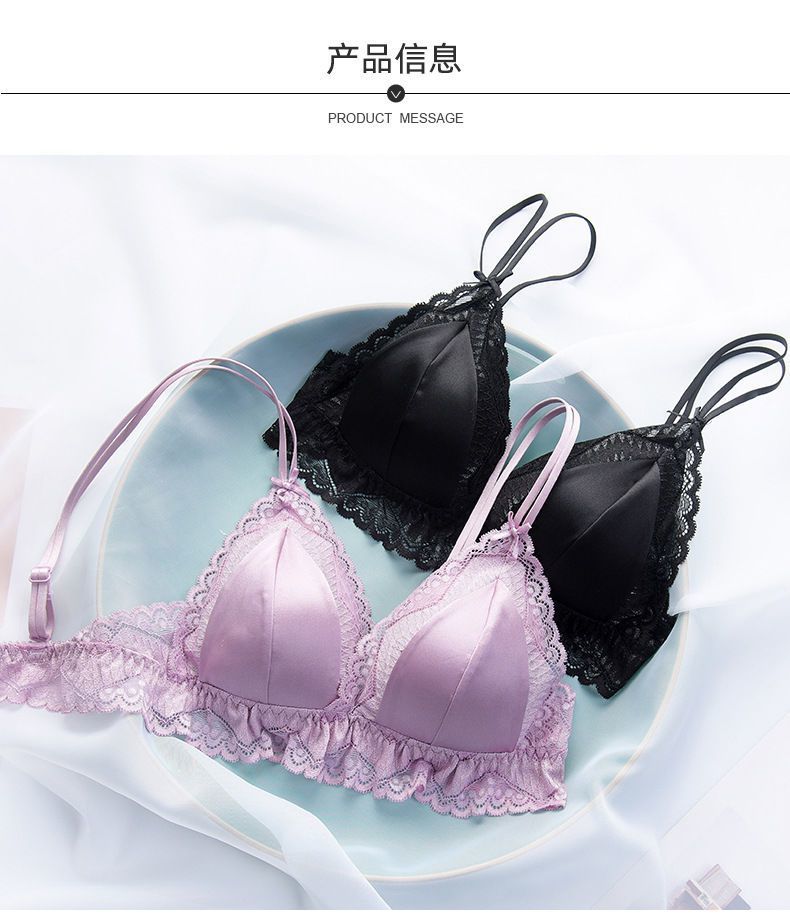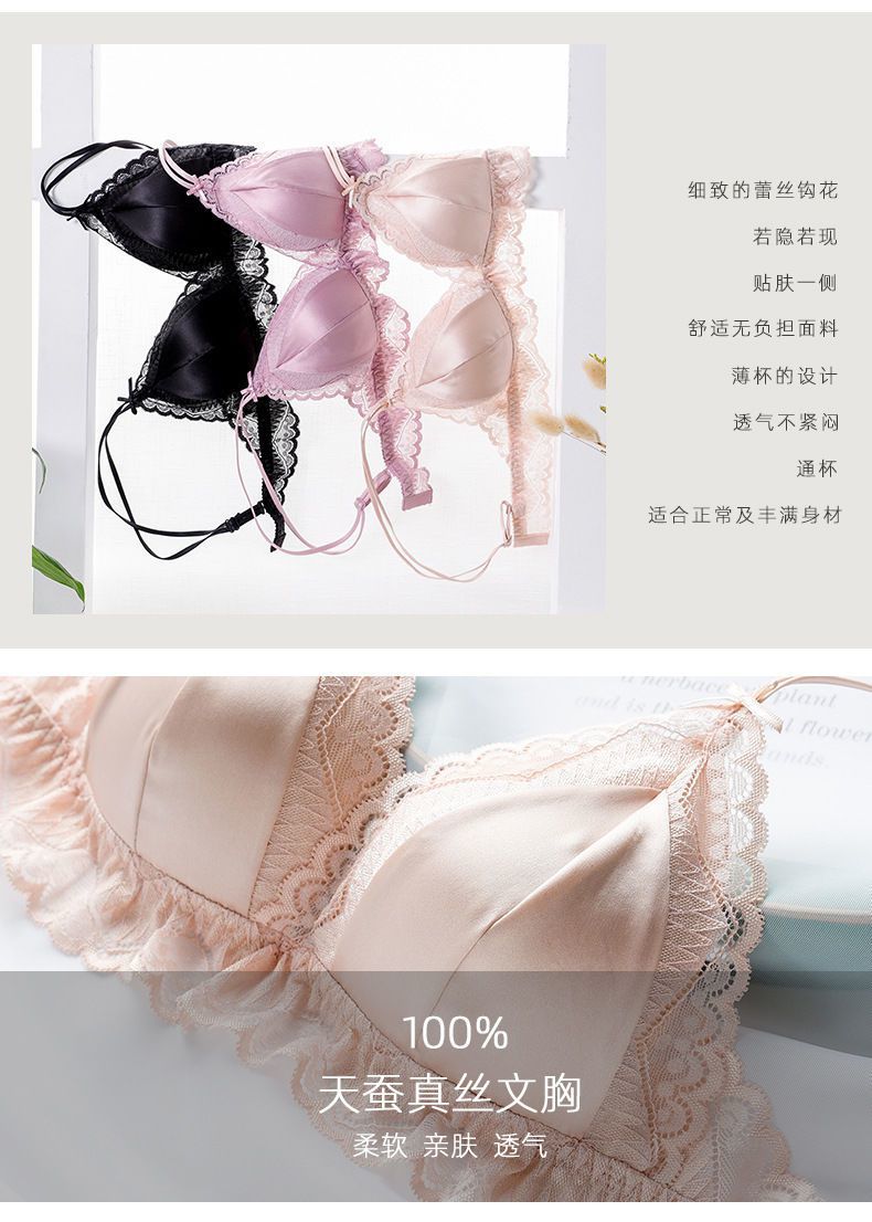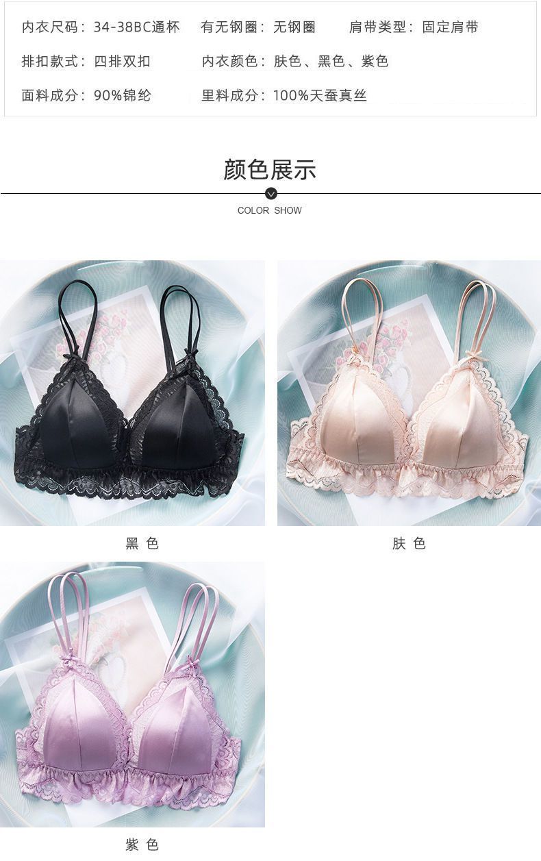 商品名稱:婷美無鋼圈天蠶真絲文胸法式性感三角杯內(nèi)衣蕾絲細帶薄款女士內(nèi)衣