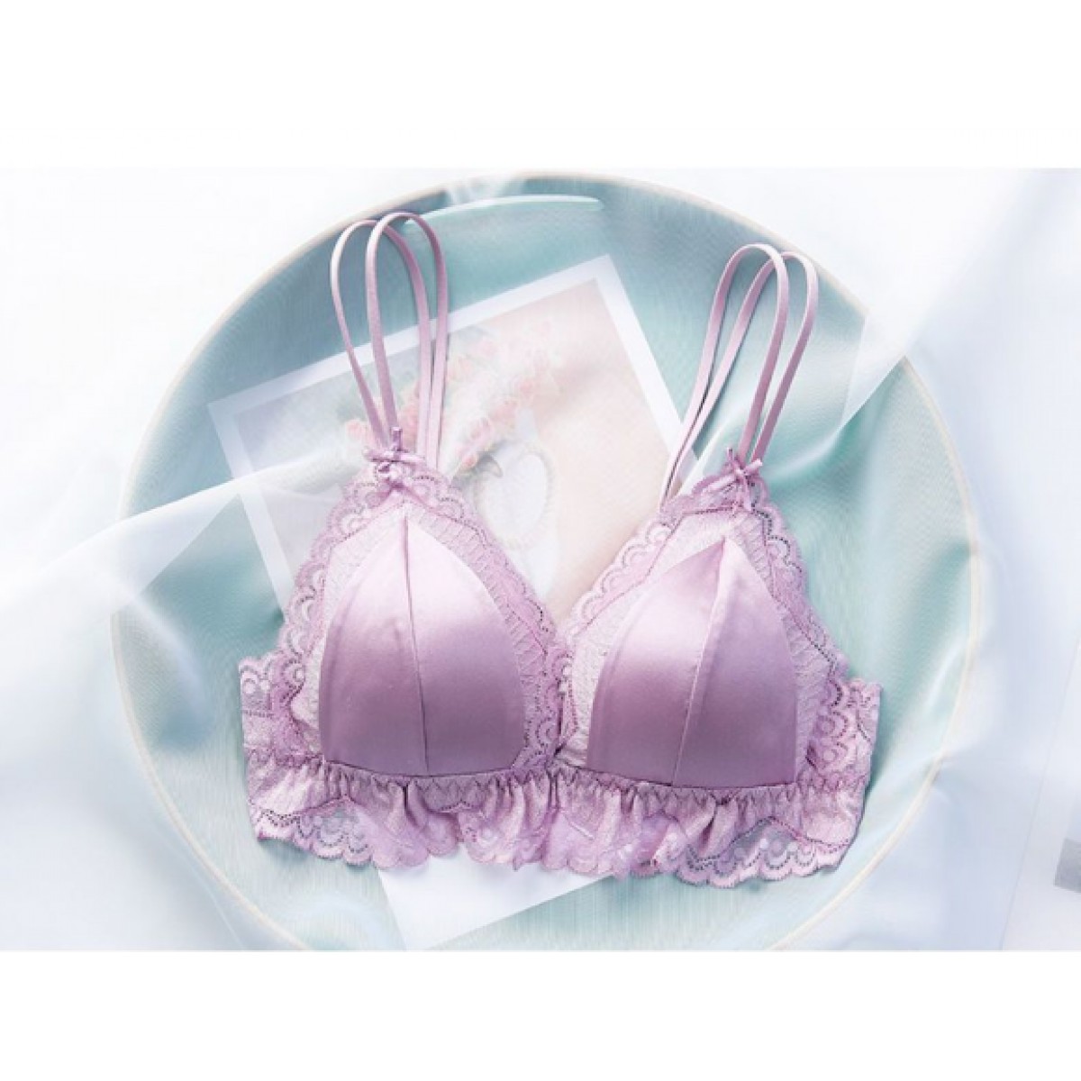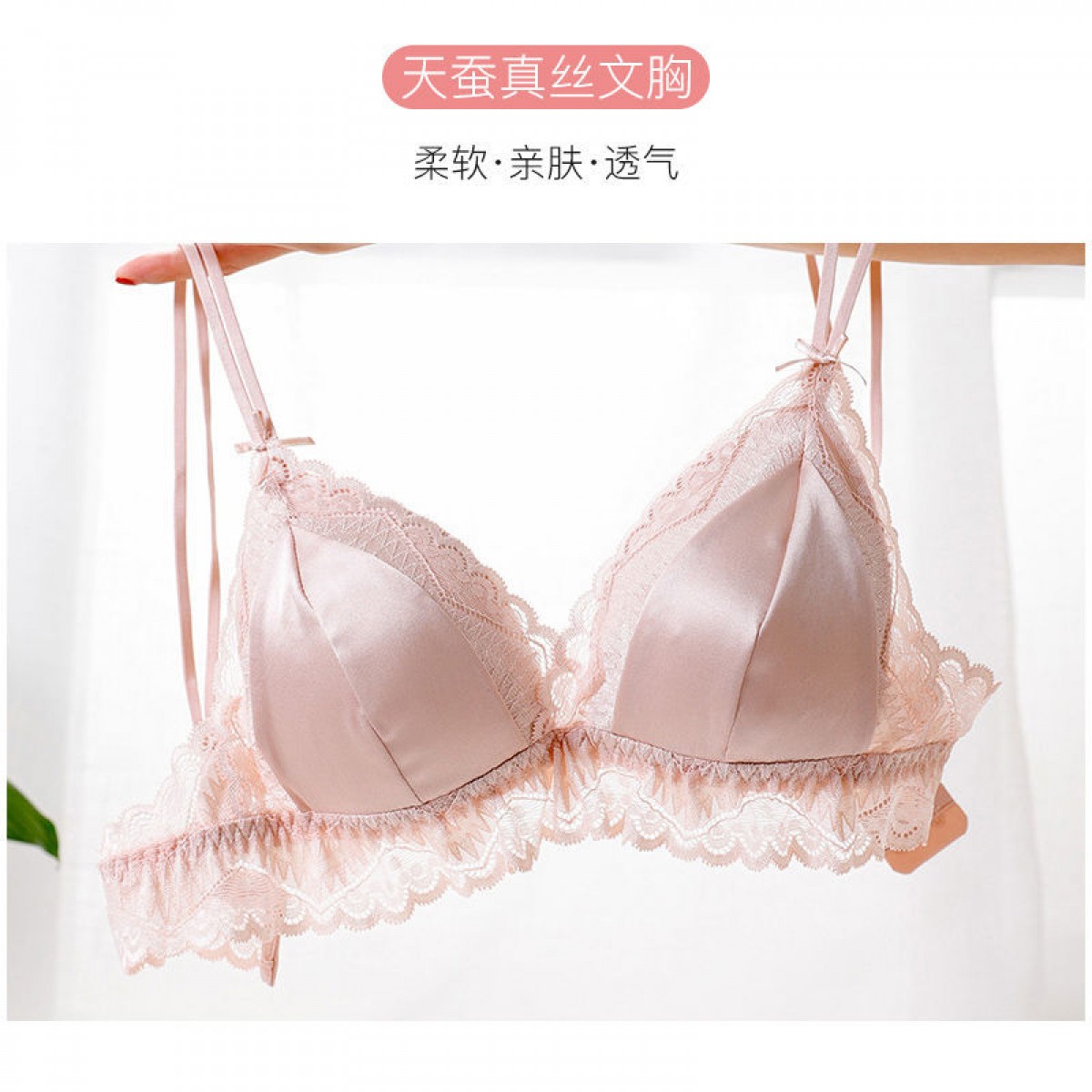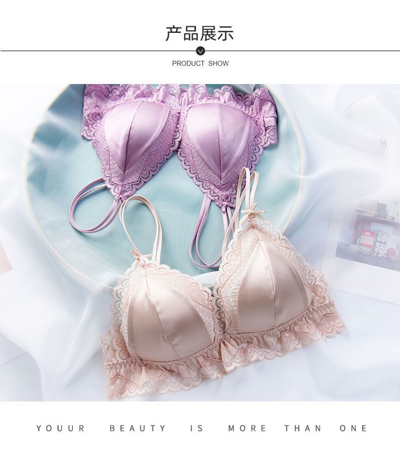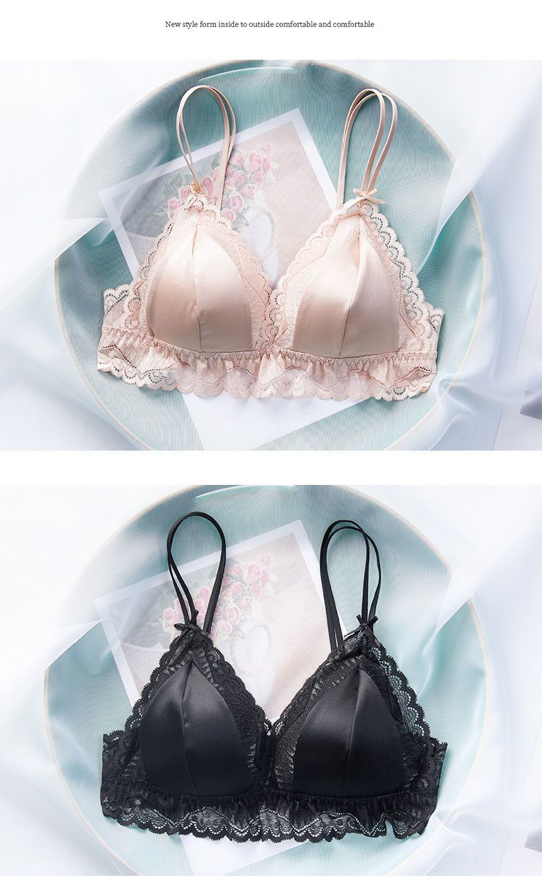 商品名稱:婷美無鋼圈天蠶真絲文胸法式性感三角杯內(nèi)衣蕾絲細帶薄款女士內(nèi)衣
