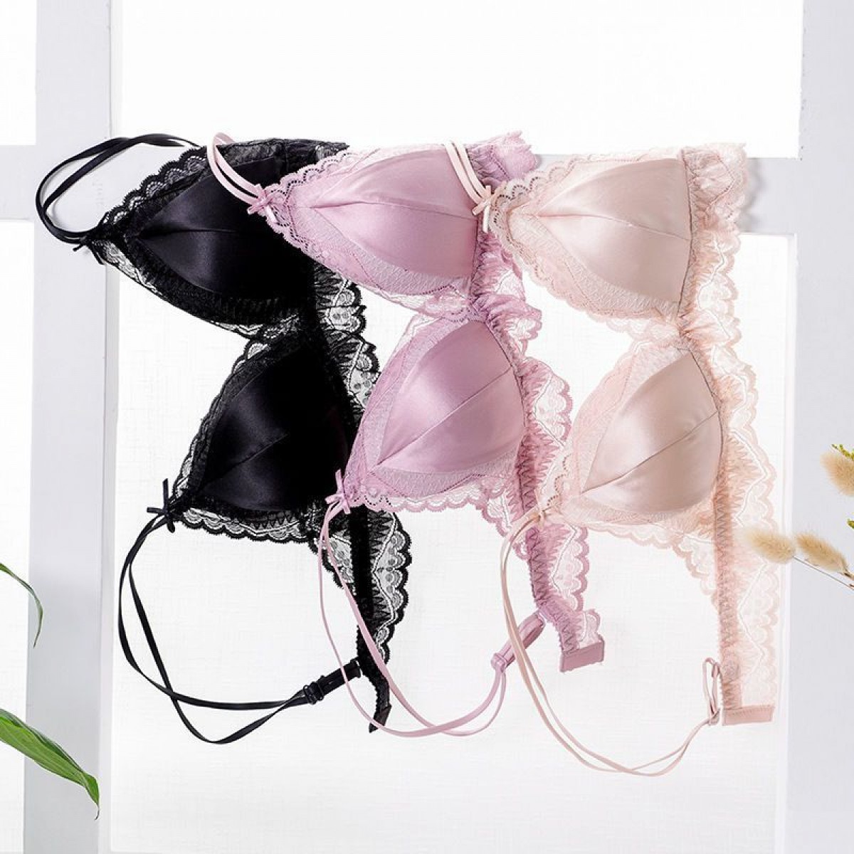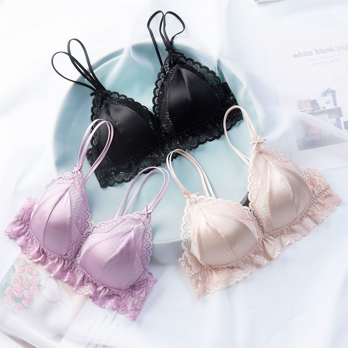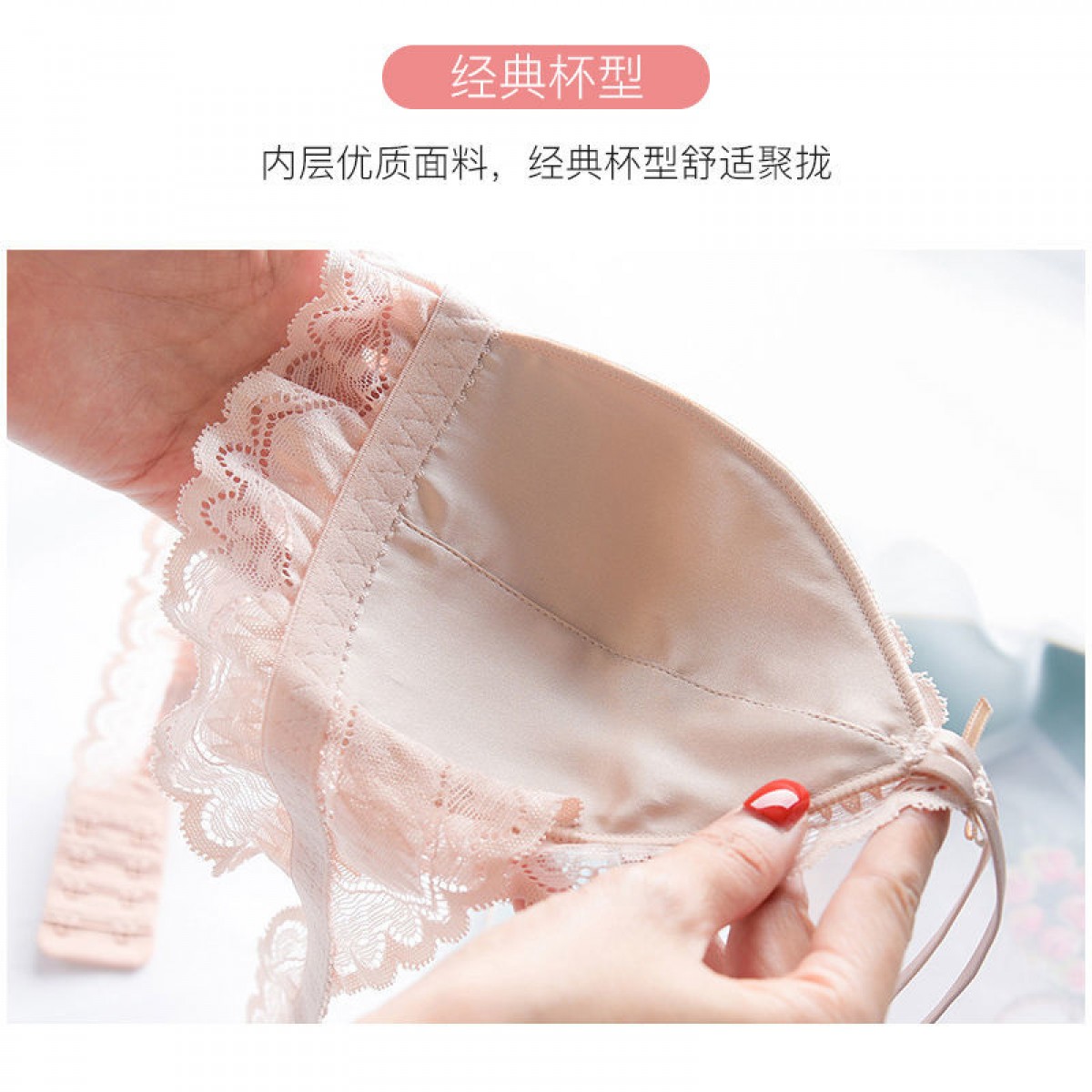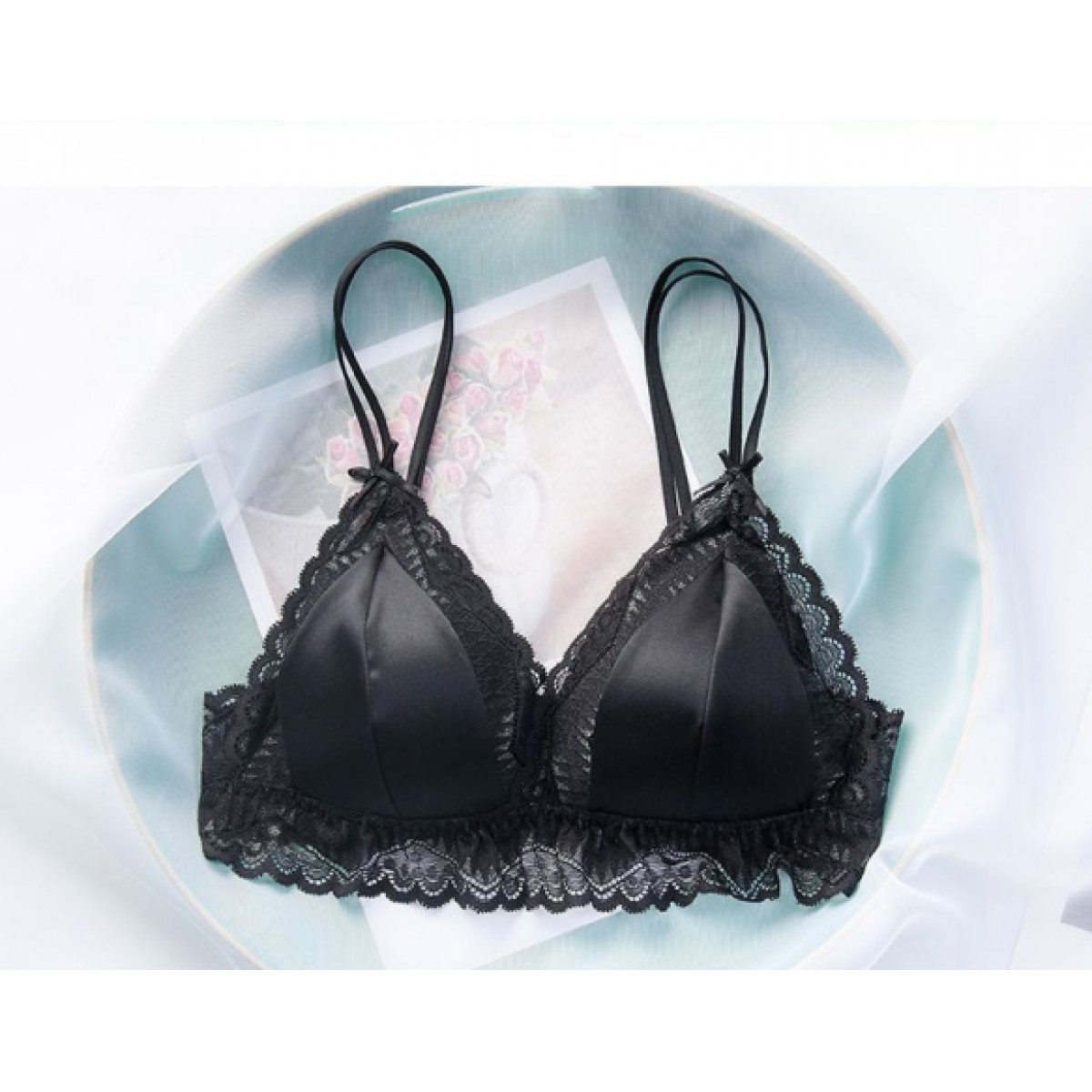商品名稱:婷美無鋼圈天蠶真絲文胸法式性感三角杯內(nèi)衣蕾絲細帶薄款女士內(nèi)衣