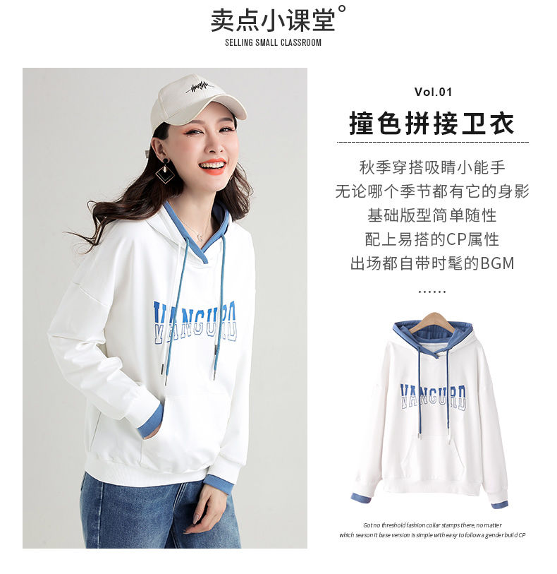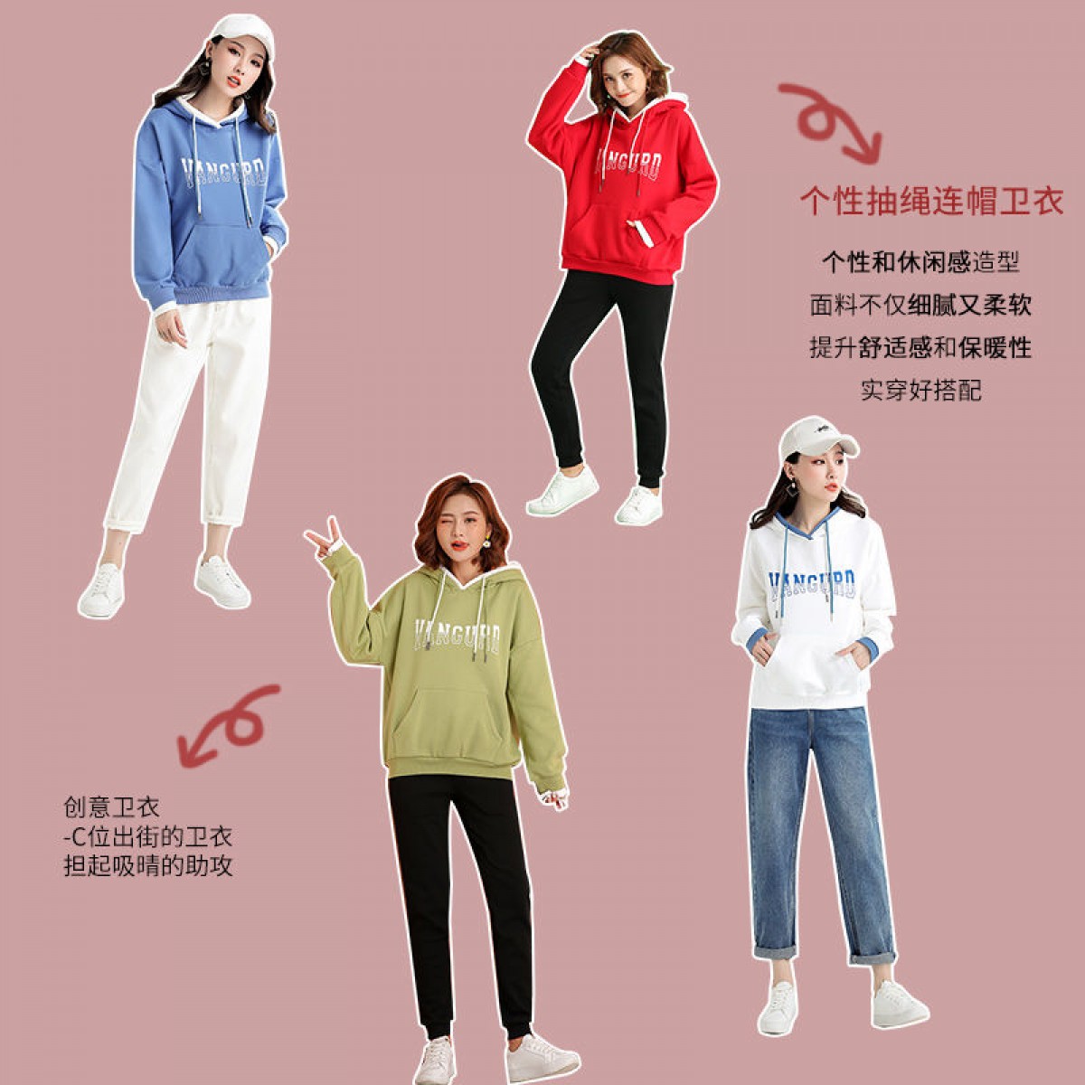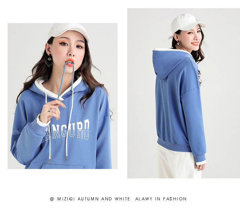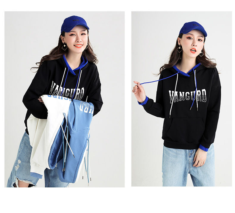 商品名稱:假兩件棉衛(wèi)衣女新款韓版潮連帽寬松加絨加厚上衣女外套秋冬季
