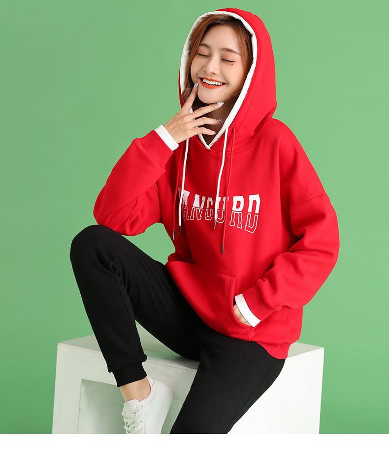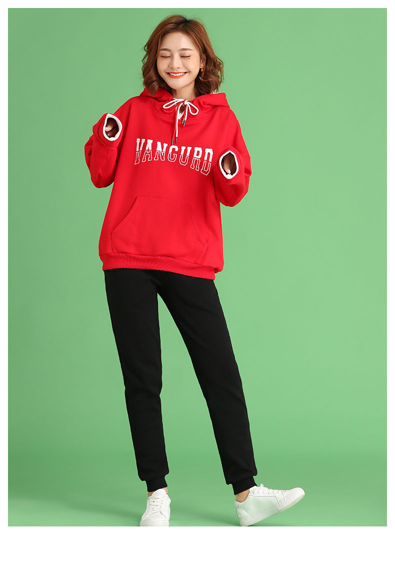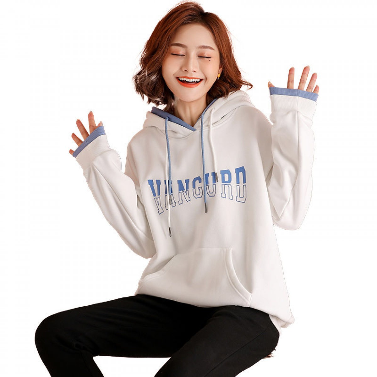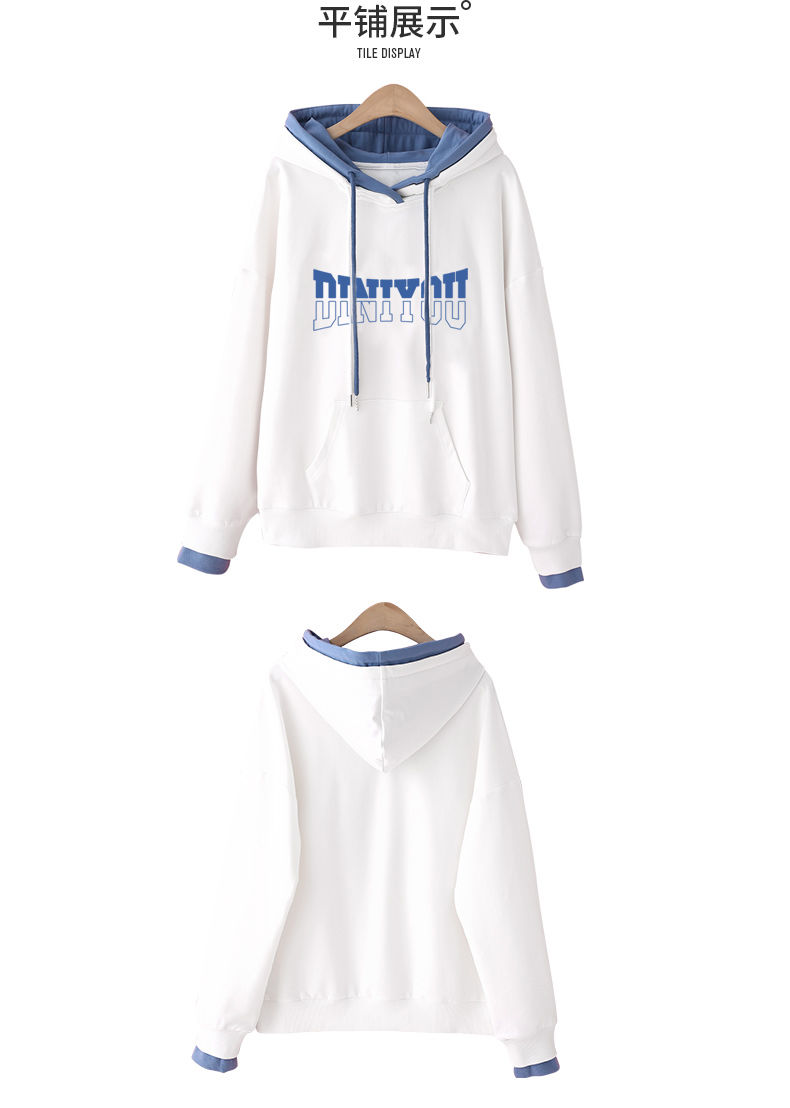 商品名稱:假兩件棉衛(wèi)衣女新款韓版潮連帽寬松加絨加厚上衣女外套秋冬季