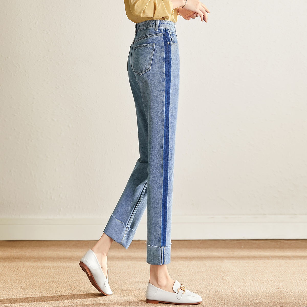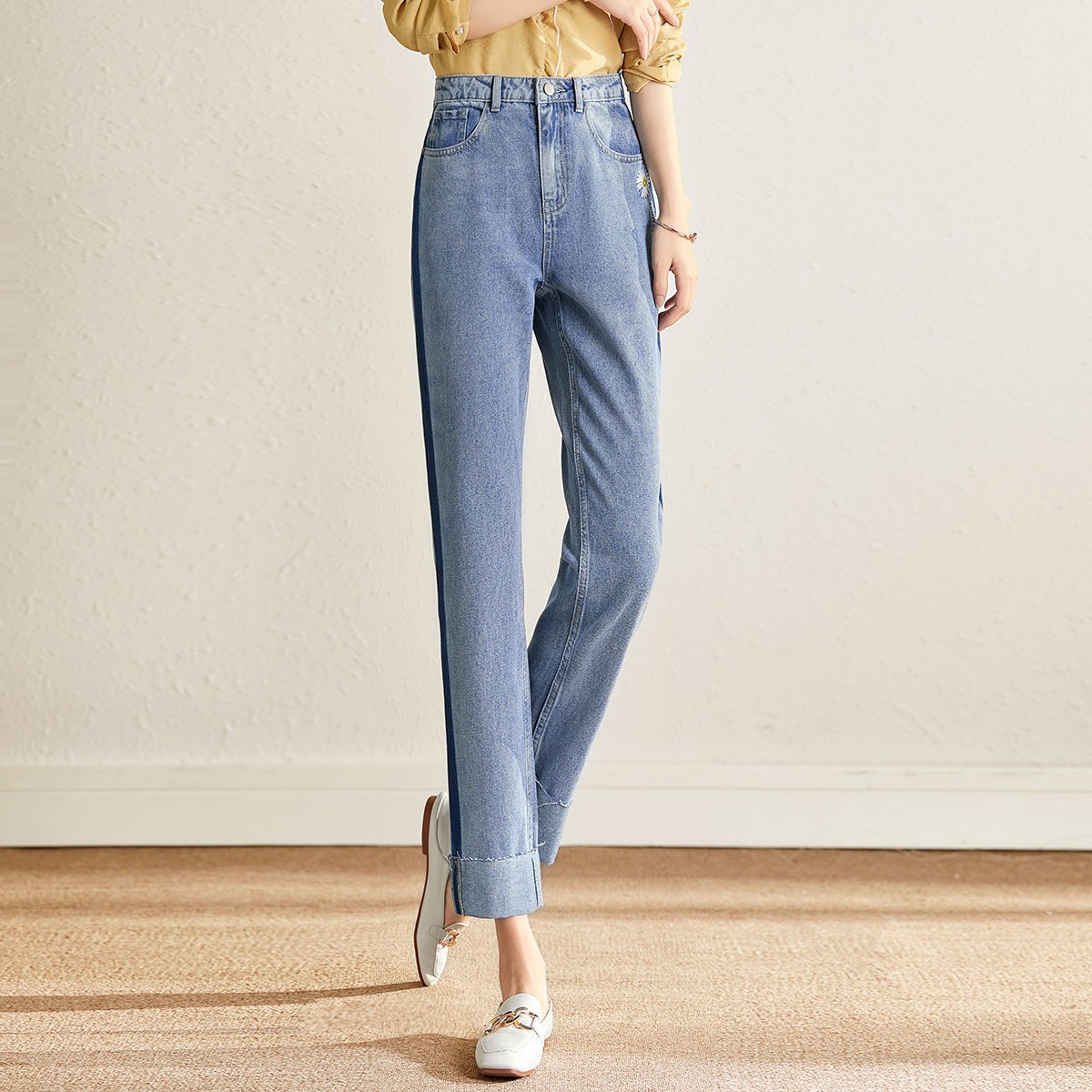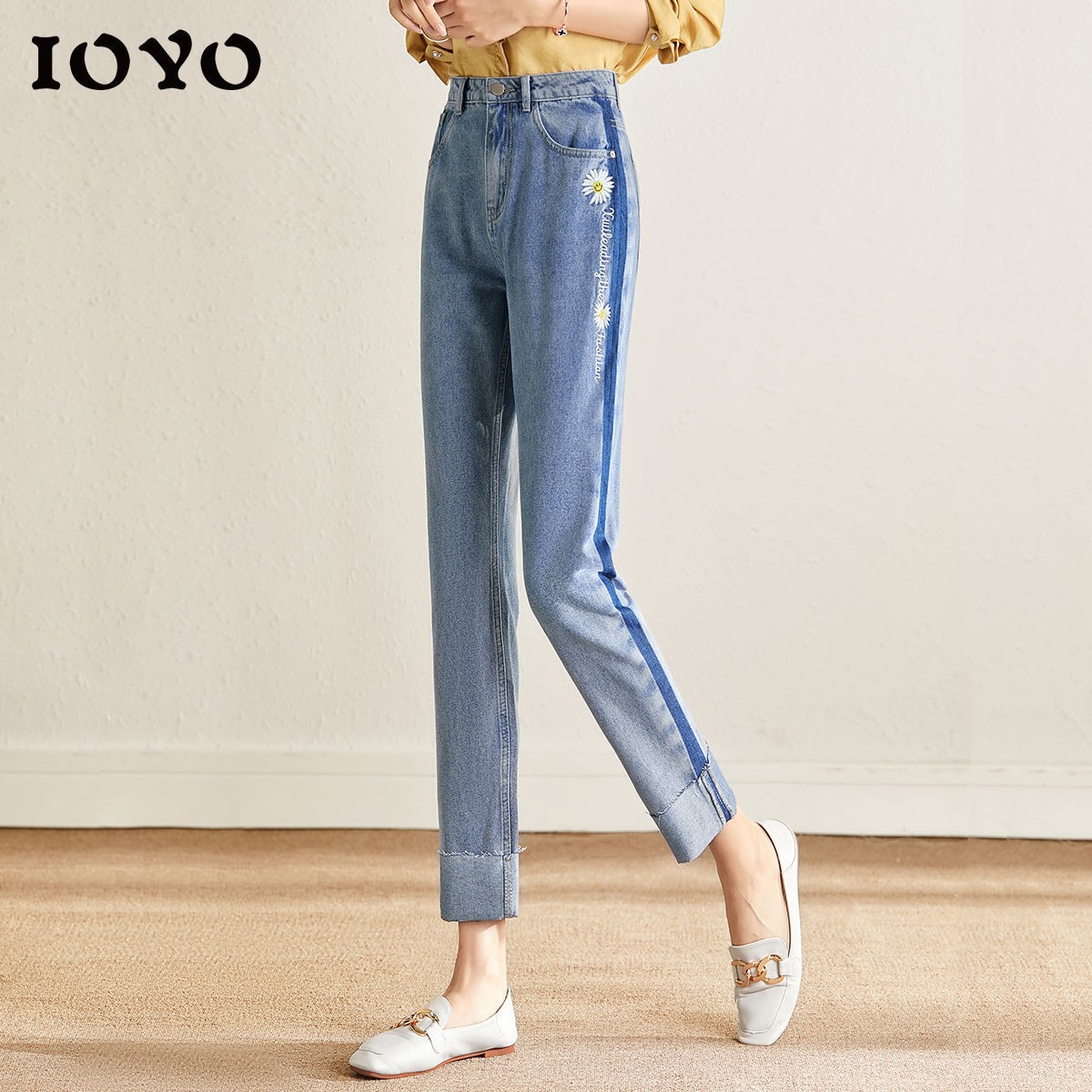 2020秋新款時尚大碼顯瘦韓版休閑小雛菊百搭高腰長褲女
