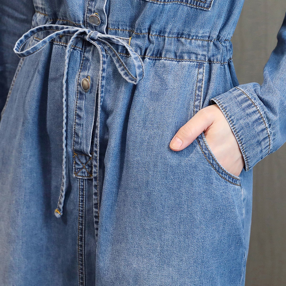 牛仔裙連衣裙2020秋季新款休閑口袋牛仔收腰短袖連衣裙女
