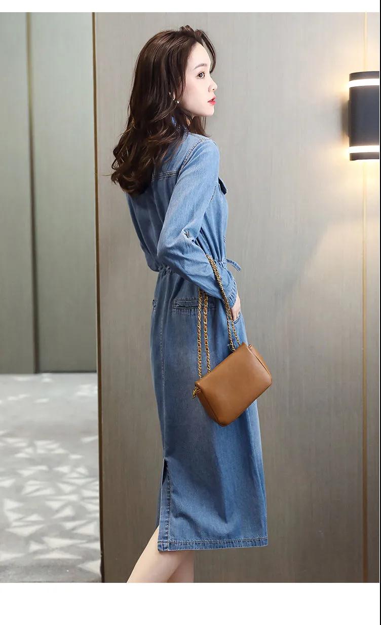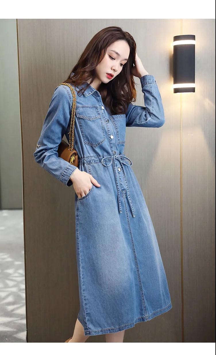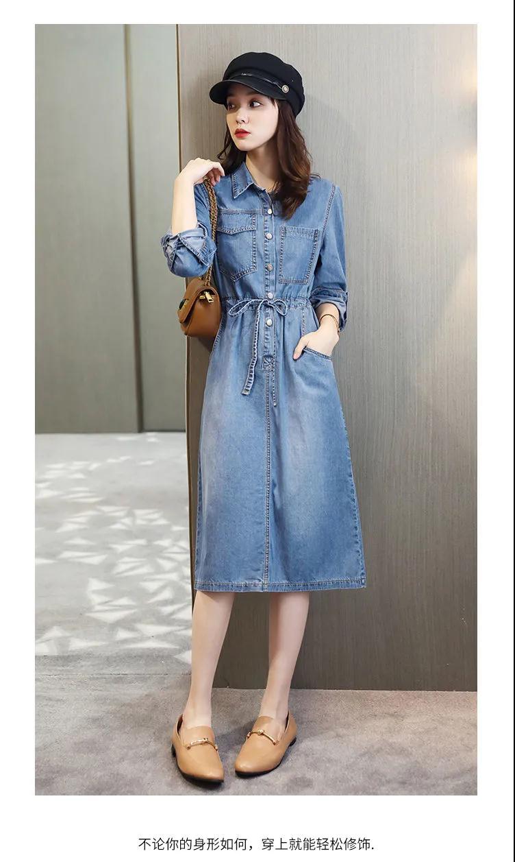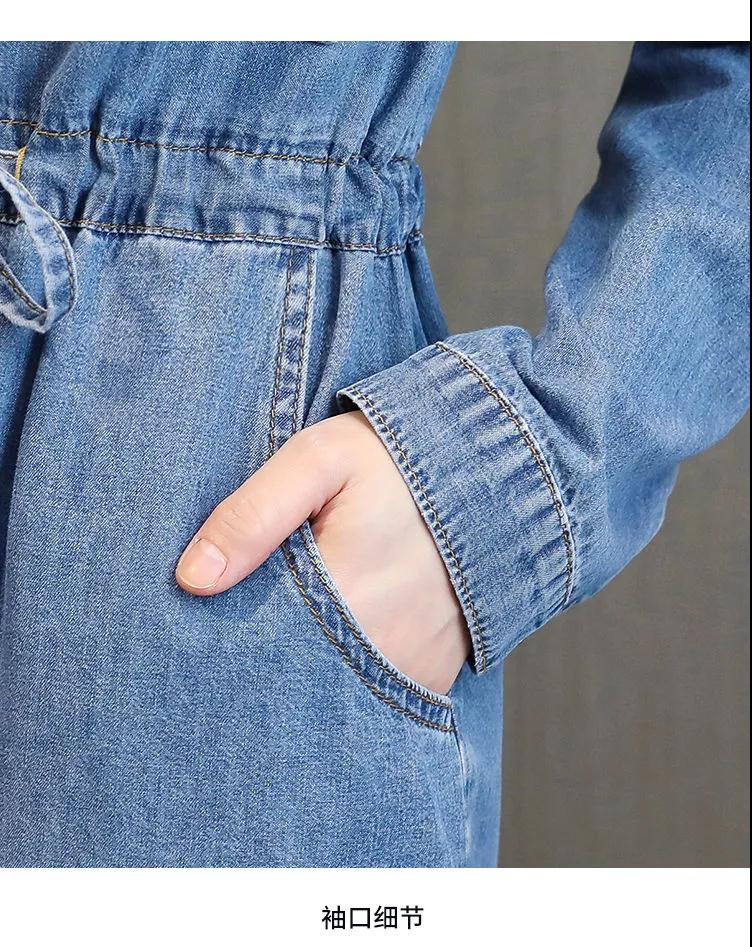 商品名稱:牛仔裙連衣裙2020秋季新款休閑口袋牛仔收腰短袖連衣裙女