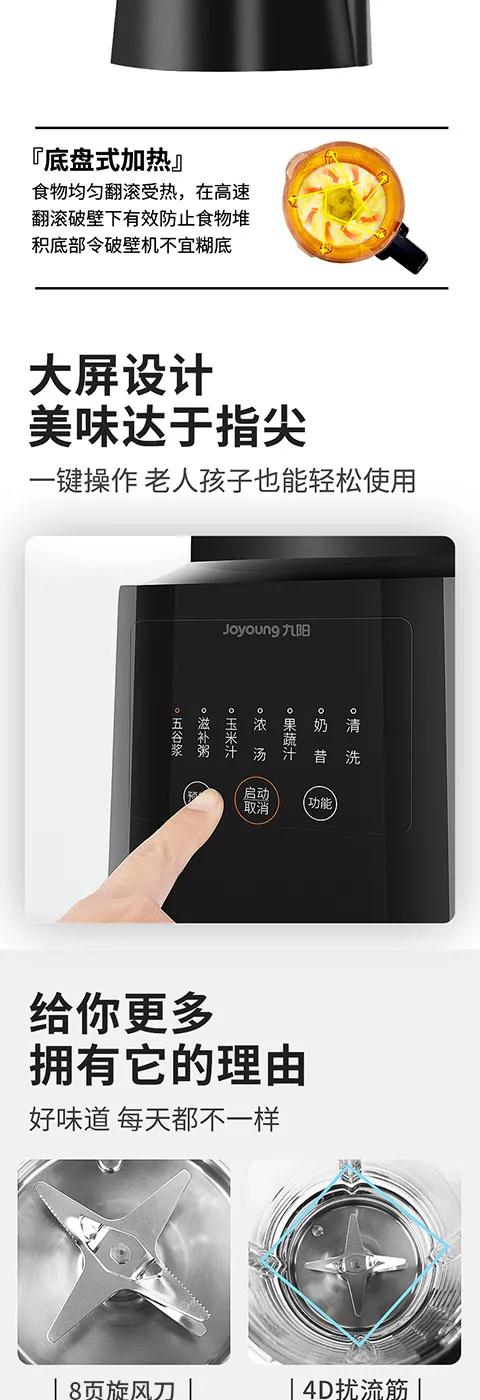 九陽破壁機(jī)全自動(dòng)加熱家用多功能豆?jié){機(jī)榨汁料理機(jī)絞肉機(jī)正品