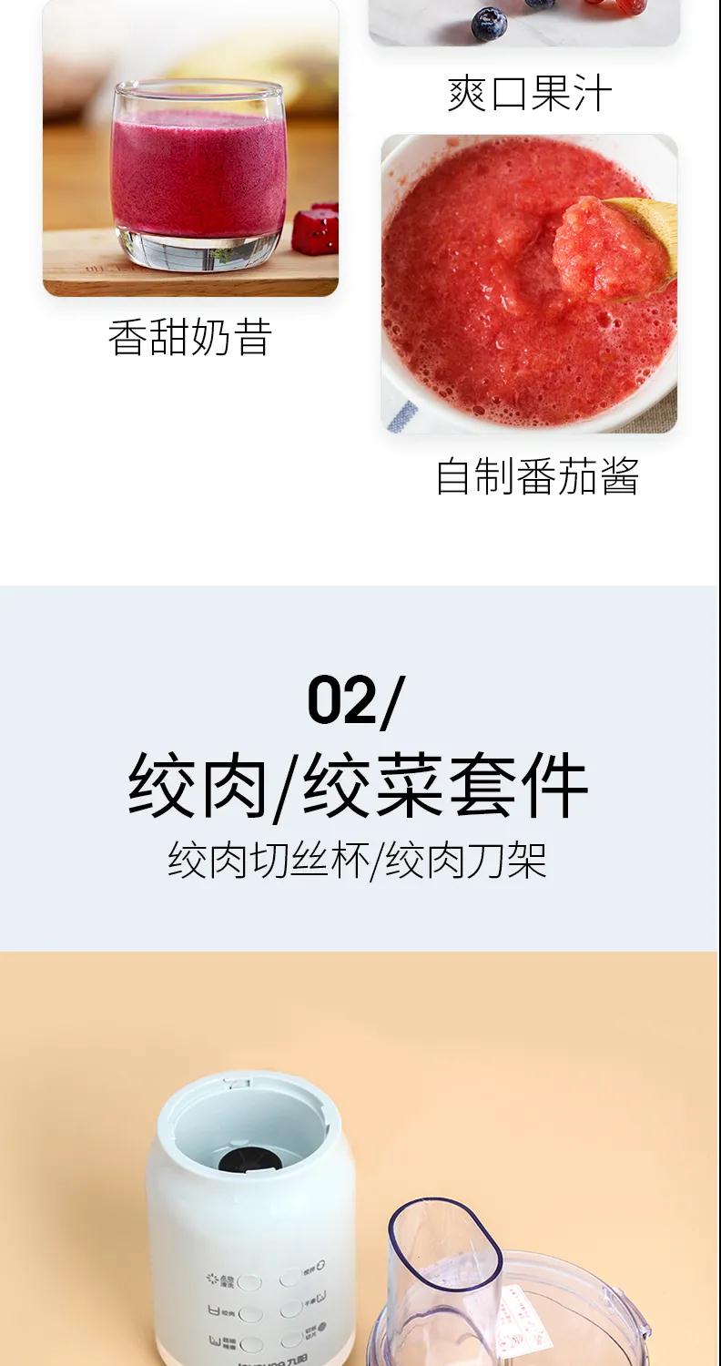 商品名稱:九陽(yáng)料理機(jī)家用水果小型全自動(dòng)豆?jié){果蔬多功能絞肉迷你榨汁杯