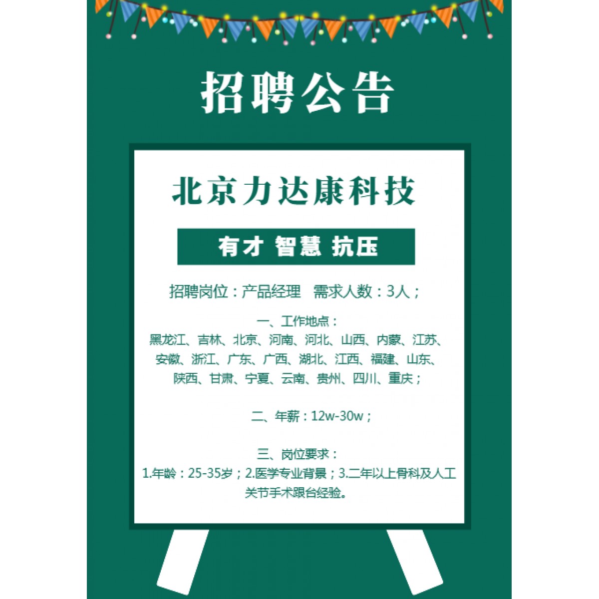 1.年齡:30-40歲;2.醫(yī)學(xué)專業(yè)背景;3. 5年以上骨科人工關(guān)節(jié)產(chǎn)品管理經(jīng)驗。