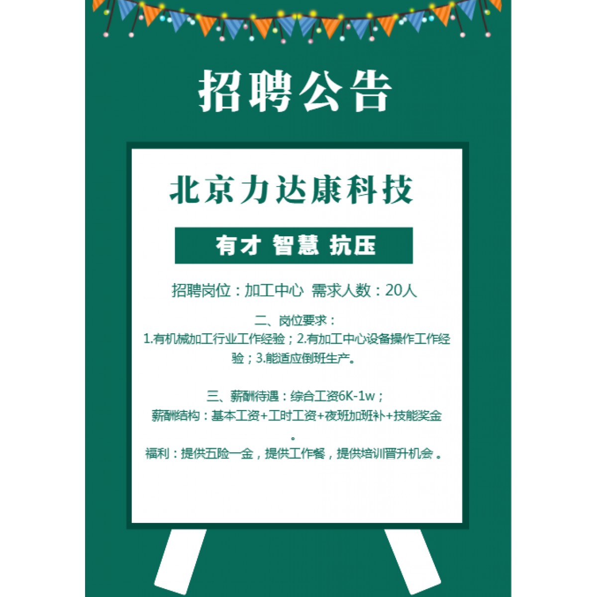 招聘崗位:加工中心 需求人數(shù):20人