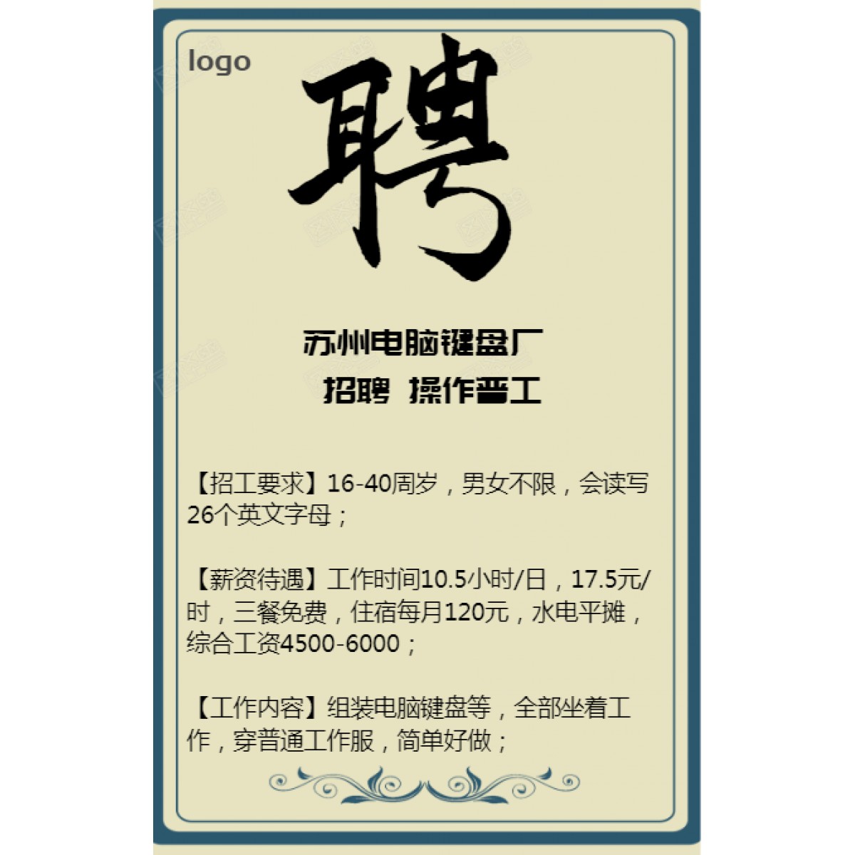 【招工要求】16-40周歲,男女不限,會讀寫26個英文字母;